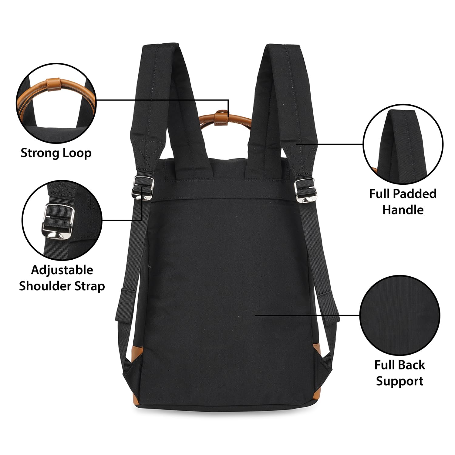 This is an elegant and slim backpack designed to fit a 15.6” laptop and has multiple organizers, with a pen holder, key holder, and a quick-access pocket for your essentials. The thick shoulder straps are provided with premium tape to adjust the length. It’s a perfect blend of fashion and is made using premium RPET fabric and Vegan leather to create an exotic look.