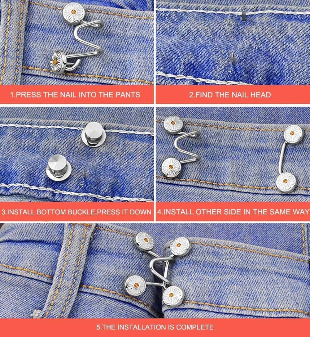 Instant Solution : 2 pcs adjustable waist buckle set allows you wear your favorite jeans when you lost weight, or some clothes are too loose. The no-Nail adjustable waist buckle, the waistband can be changed to large and small, detachable, and the adjustment is firm, Tool free, no-sewing, removable and reusable.