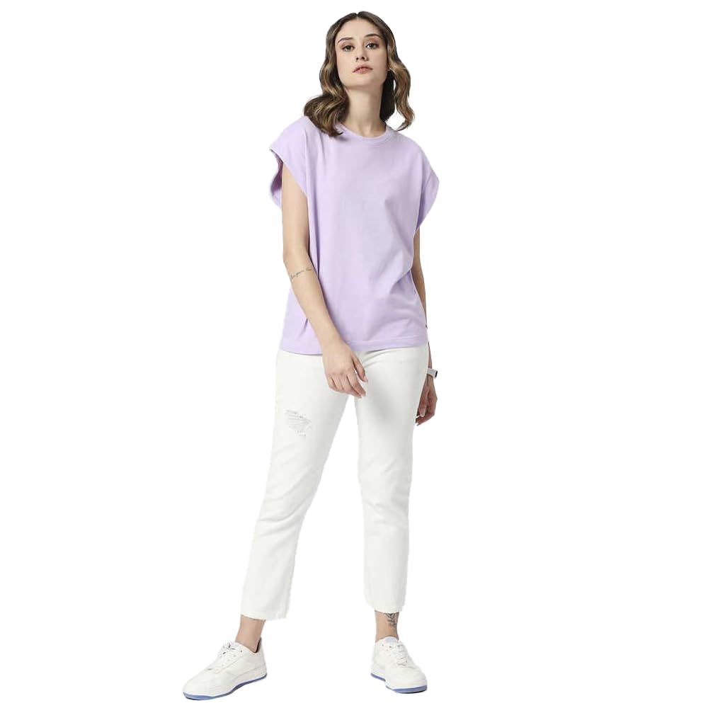Stylized crop fit t-shirt with round neck & it can easily worn over tank top.