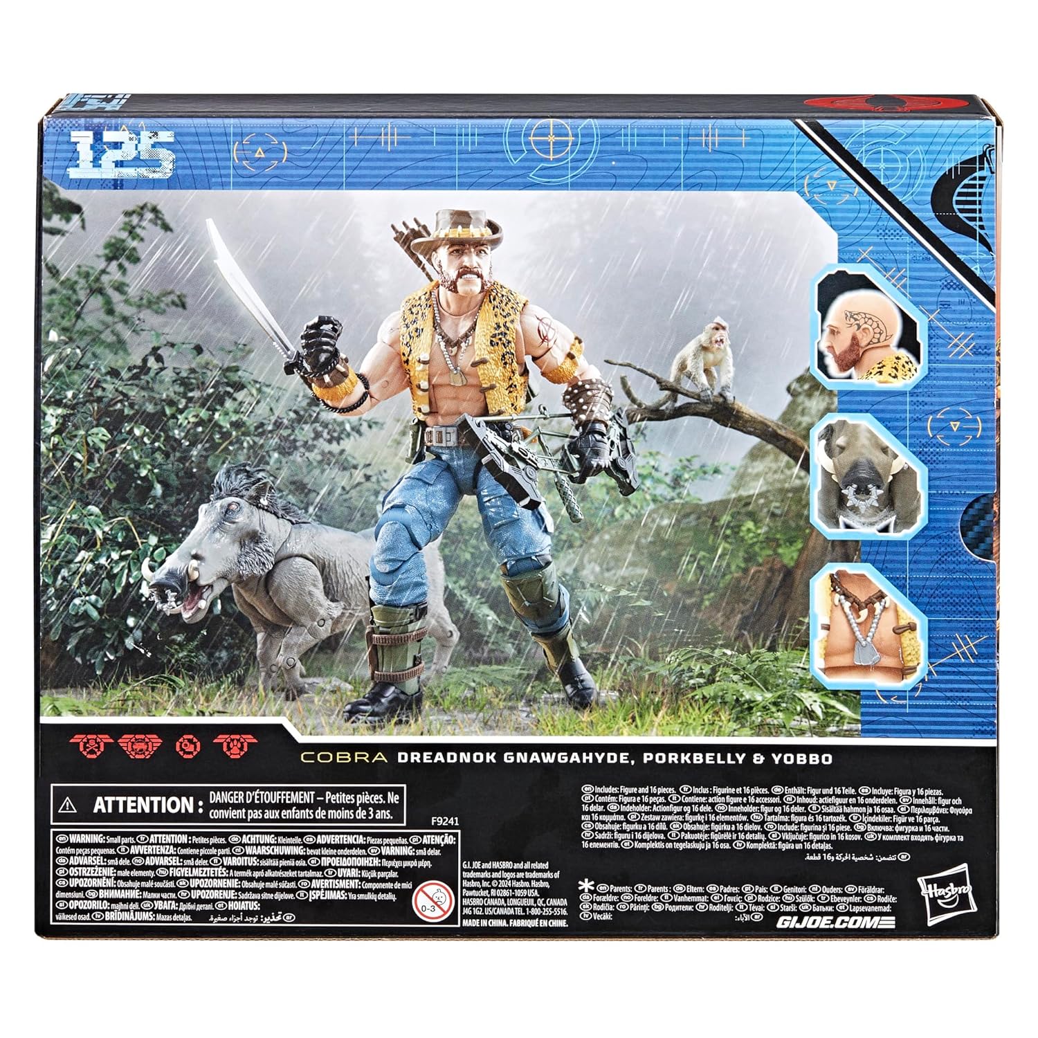 G.I. Joe is a highly skilled special operations force of men and women from around the globe tasked with defending the world from Cobra, a ruthless criminal organization bent on total domination. Wherever there’s trouble, G.I. Joe is there. New to the G.I. Joe Classified Series line, Dreadnok Gnawgahyde and pets Porkbelly & Yobbo come ready for adventure, with multiple points of articulation for high poseability. This Gnawgahyde figure contains 16 accessory pieces including bow, quiver, arrow, 2 knives, machete with wrist attachment, slouch hat, sniper case, and weapon accessory; plus pet warthog Porkbelly and macaque Yobbo. Gnawgahyde could have single-handedly decimated the herds of all the endangered species of Africa, if his fellow poachers hadn’t railroaded him off the continent for cheating at cards, being generally obnoxious, and smelling bad. With the help of flatulent warthog Porkbelly and surly macaque Yobbo, he kept solvent by stealing furs until the Dreadnoks recruited him. G.I. JOE and HASBRO and all related trademarks and logos are trademarks of Hasbro, Inc.