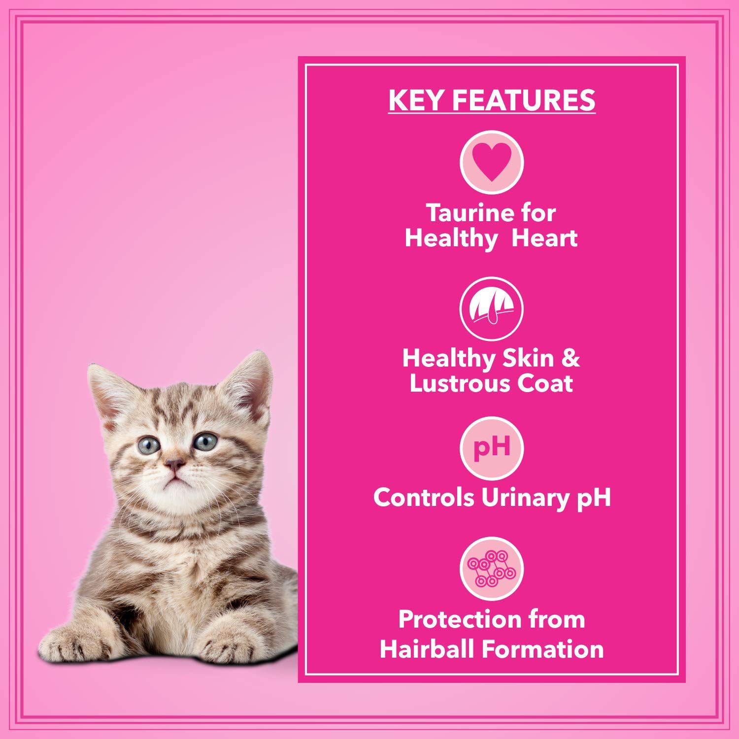 Control urinary pH and provides hair fall protection;Formulated with high quality protein, antioxidants and essential nutrients that makes kitten healthy