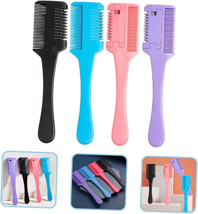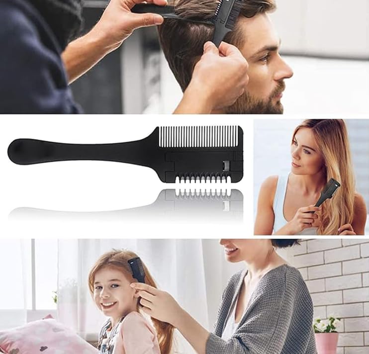 MULTIFUNCTIONAL : one comb, two functions. One side has long comb teeth for combing, and one side has a razor blade for thinning and split repair and also convenient for hairstyling
