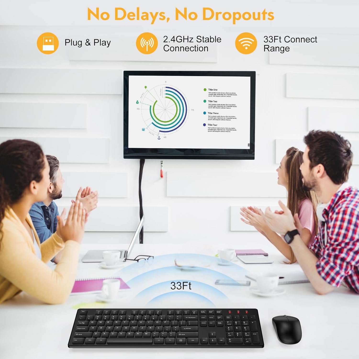 WIDE COMPATIBILITY: This wireless keyboard mouse combo is compatible with all Windows system versions, Linux, Chrome OS, Mac OS. Works well with desktops, Chromebook, PC, laptop, computer, TV.