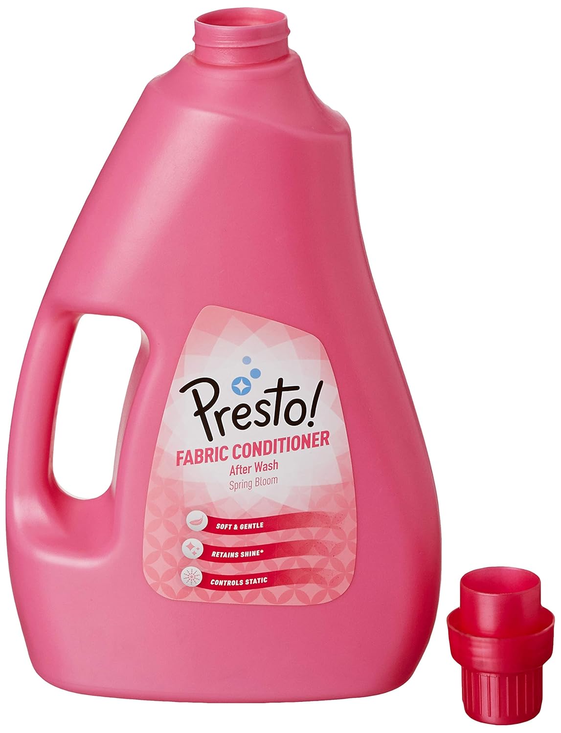 The house of Presto! brings to you this liquid after-wash fabric conditioner to help keep your clothes soft and gentle. It helps retain the shine of your clothes and prevents the damage caused by repeated washing with detergents. Being phosphate-free and bleach-free, it is gentle on your clothes and protects fabric colour while washing. It is also safe and gentle on your hands. Leaving a pleasant spring bloom fragrance after use, the Presto! fabric conditioner gives you clothes that smell fresh and clean.