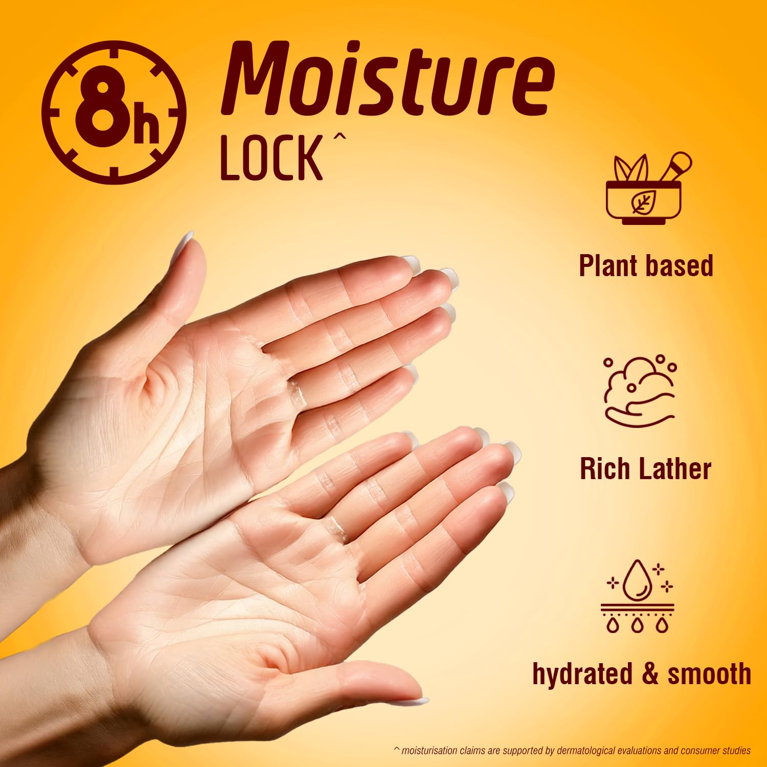 8 hour Moisture lock: Keep hands hydrated and soft for hours
