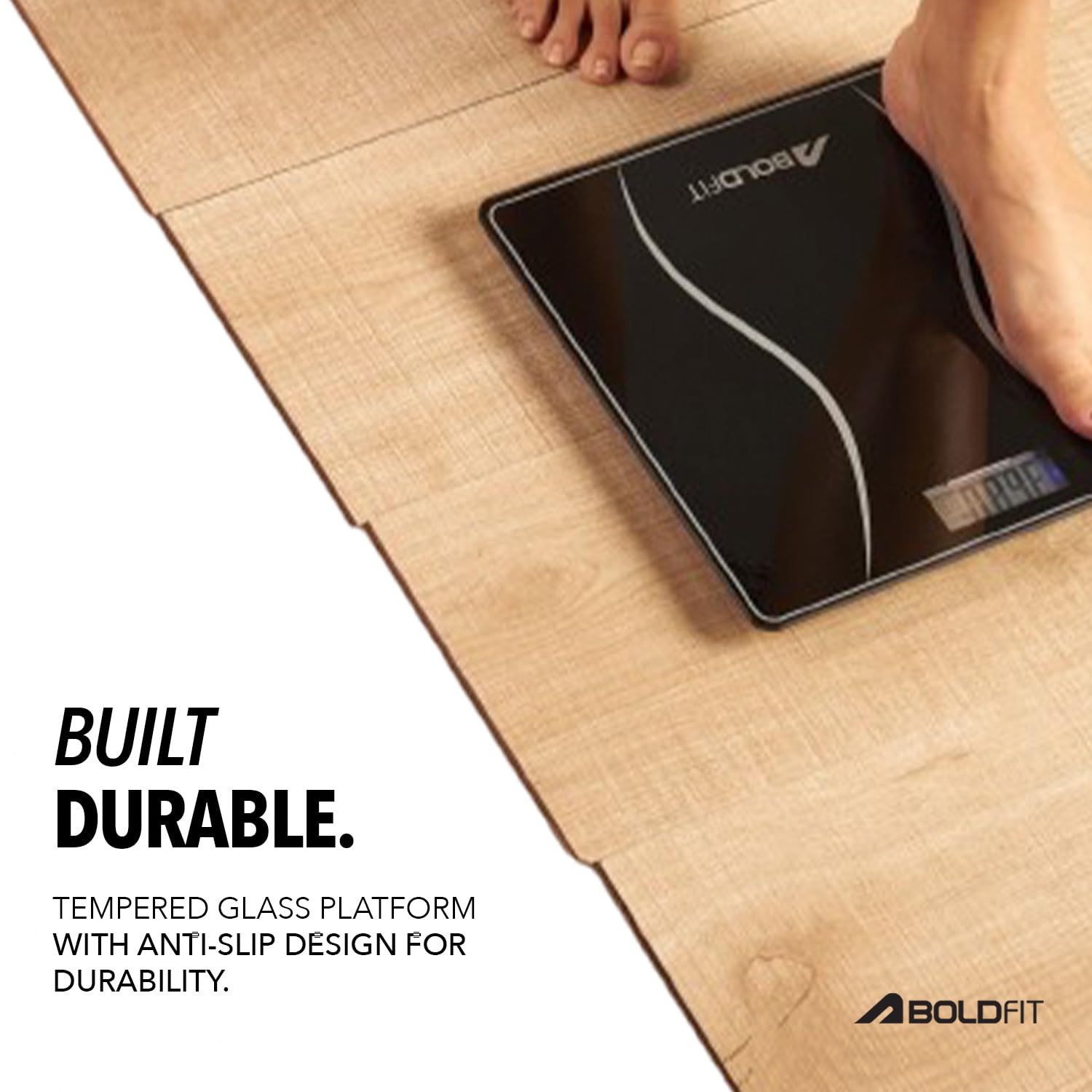 A DURABLE CHOICE: Max load capacity: 180kg and 5-mm tempered glass platform provides exceptional durability and comfort. Equipped with skin friendly feeling material on tempered glass base, scratch resistant and unique foot placement design to support from slipping, you can rely on the sturdiness of our scale. Easy to clean surface on which no water stain.