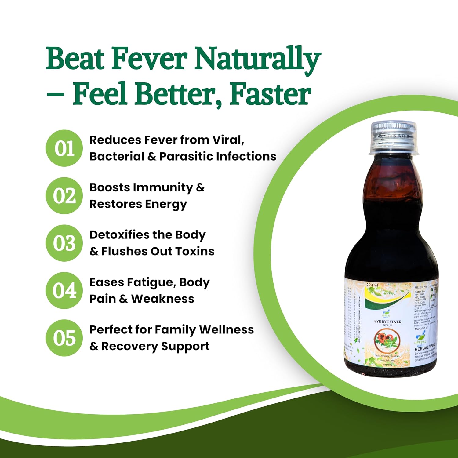 HERBAL VEDIC Bye Bye Fever Syrup | Get Ayurvedic Relief from Throat Issue, Natural Fever Care Syrup | Typhoid, Malaria, Dengue, Chinkengunia | Fever Syrup for kids all types Fever Syrup (200ml)