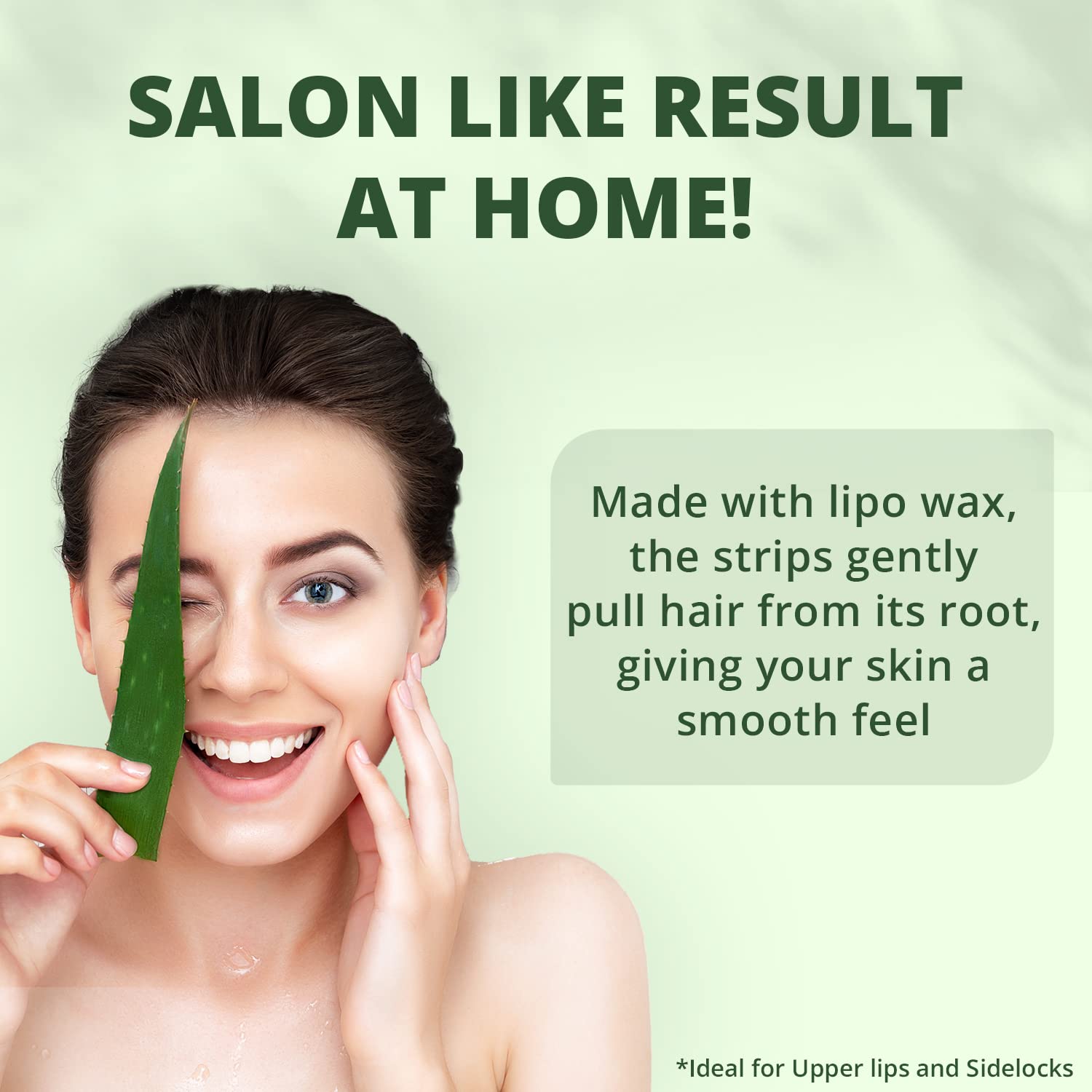 2.FORMULATED FOR SENSITIVE SKIN: The facial wax strips have been curated for delicate facial skin with scientifically advanced Lipo Wax and Aloe Vera having anti-irritant properties.