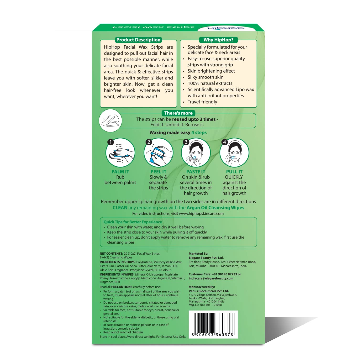 1.FACIAL HAIR REMOVAL AT HOME: HipHop Skin care facial hair removal strips with are an effective and easy way to get rid of the unwanted hair.