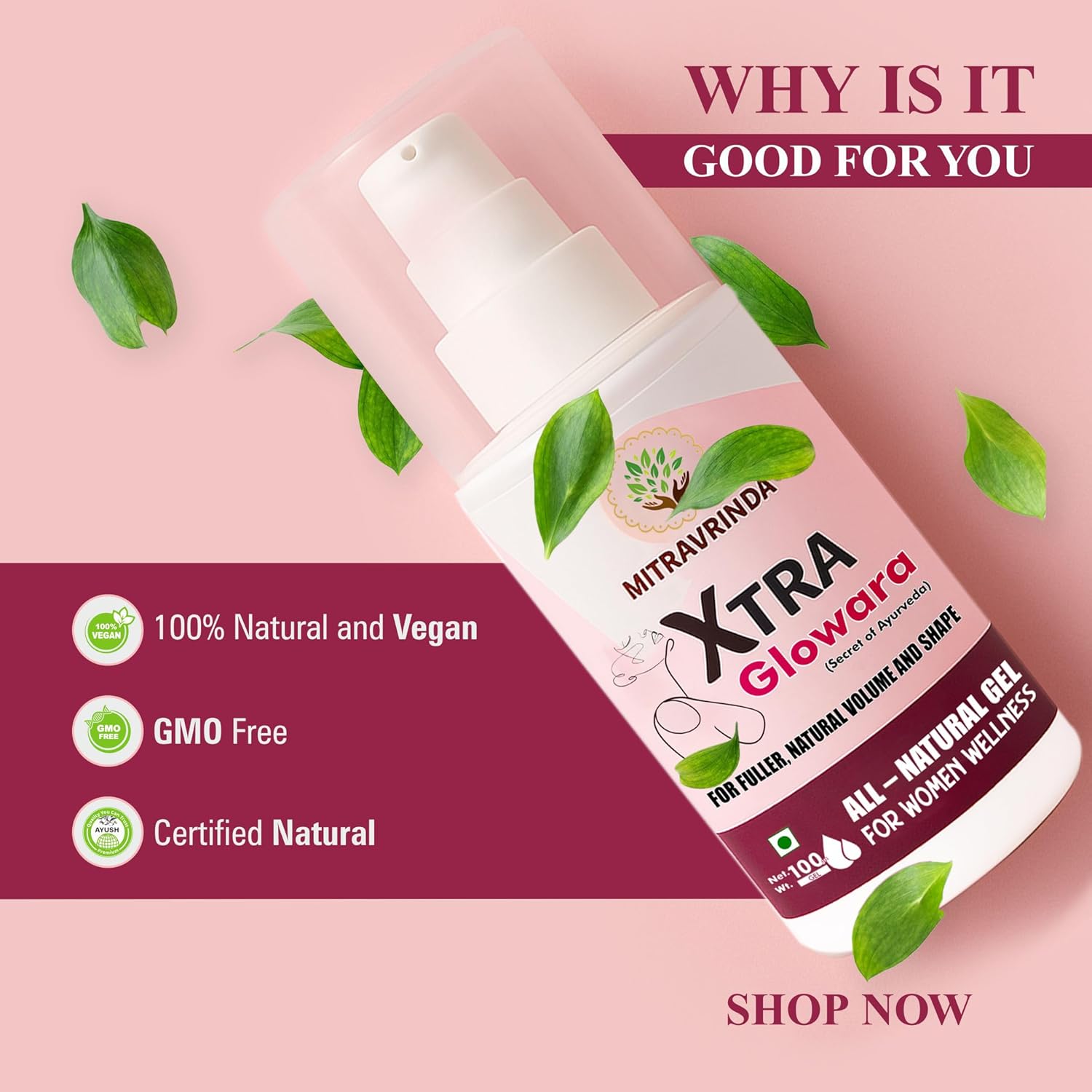 INGREDIENTS: Xtra Glowara Gel unique formulation is made up of a combination of natural and proven plant extracts which include Ashwagandha, Shatavari, Mochras, Kounch, Vach, Lovang, Kut, Inderjoan, Majuphal, Khumbhari, Kanguni, Darim