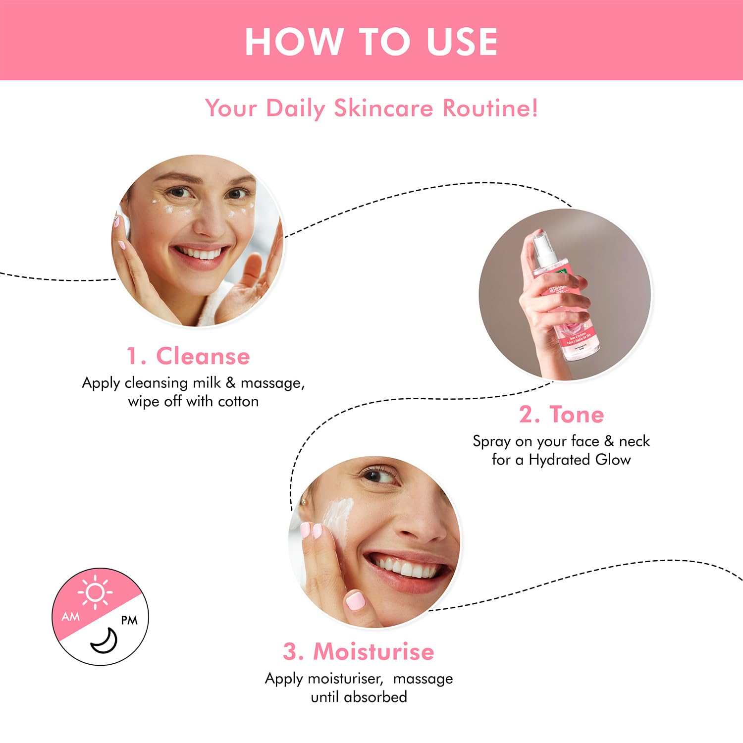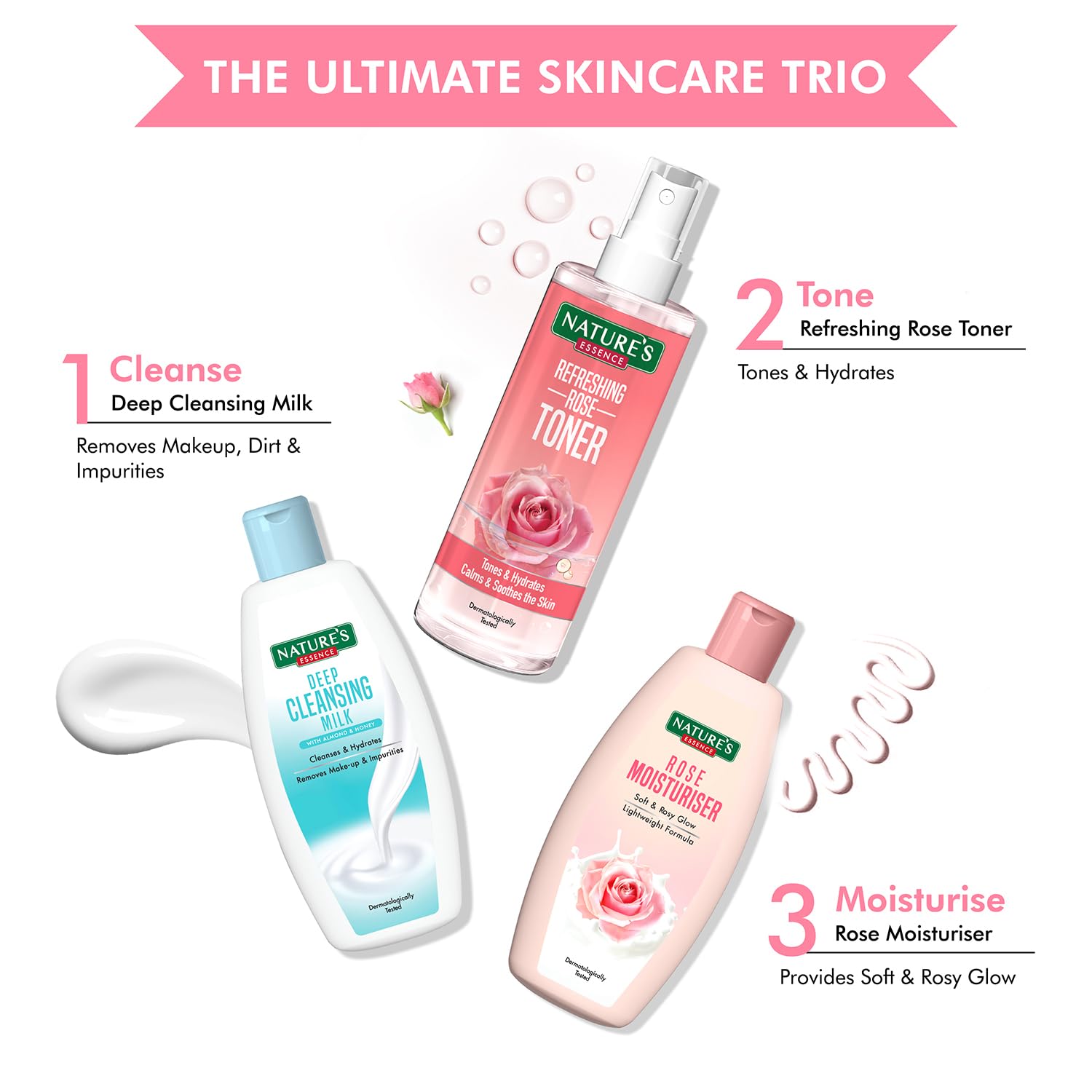Your everyday skincare regime essentials. Kit Contains – Step 1 : Deep Cleansing Milk – Cleanses & Nourishes Step 2 : Refreshing Rose Toner – Tones & hydrates Step 3 : Rose Moisturiser – Non-sticky, Soft & Rosy Glow