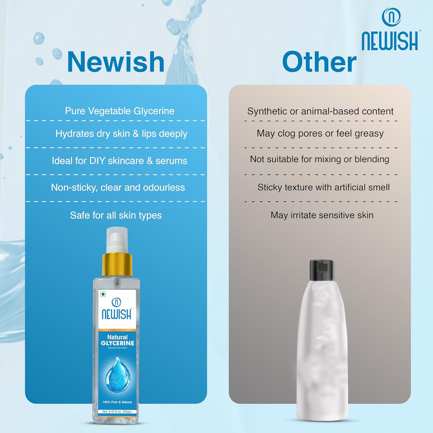 ✔ Newish Glycerine: The essential secret ingredient for natural skincare products.