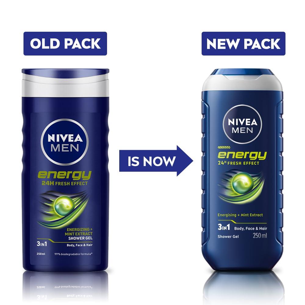 Formulated with mint extracts and infused with a masculine fragrance, NIVEA MEN Energy Shower Gel provides your skin and with a 24hour refreshing feeling, leaving it revitalized and cared for.