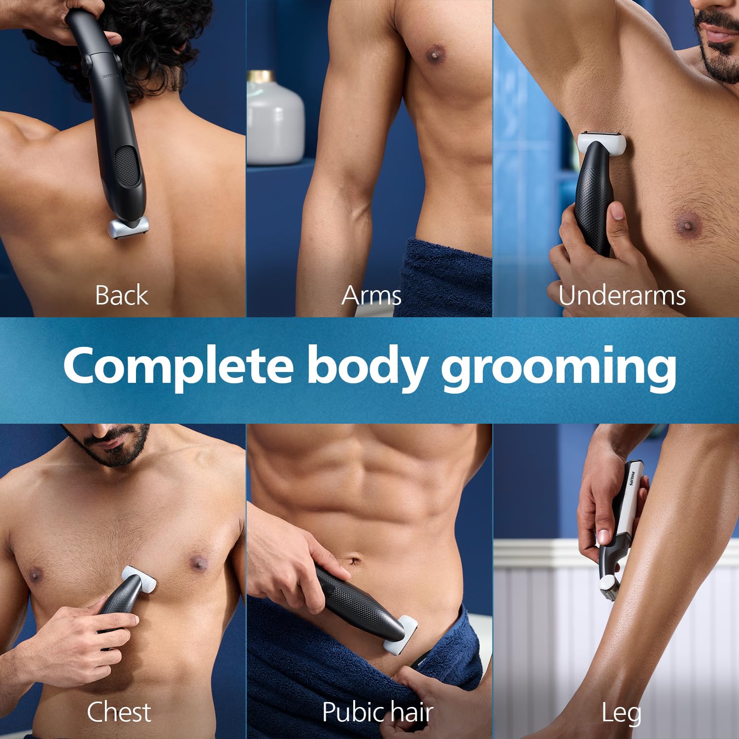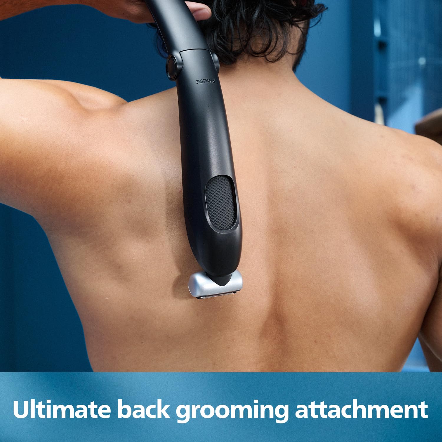 Full body grooming: cuts hair at 3 different lengths for clean, even results on your back, shoulders, chest, abs, underarm, arms, groin and legs