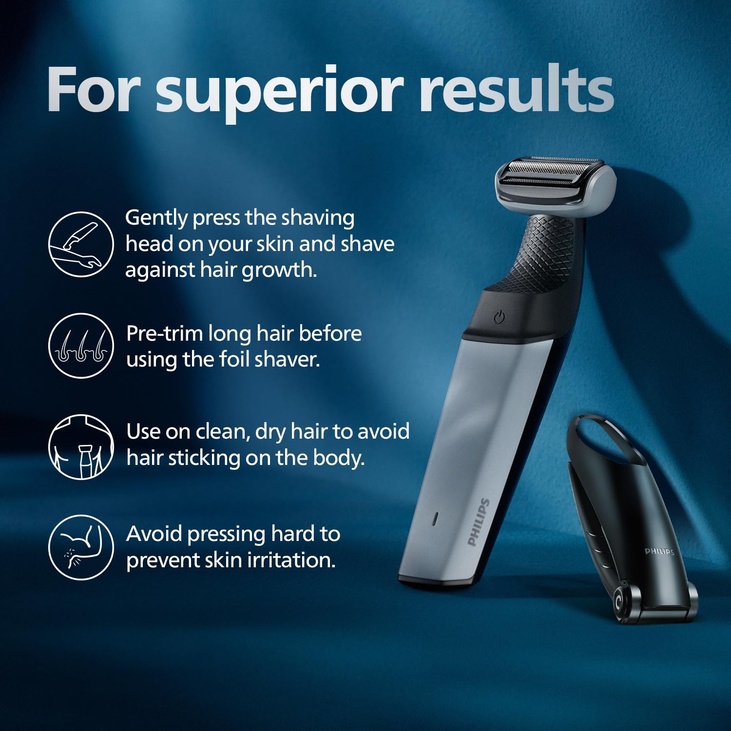 BG5021/15 designed to power through hair without compromise on skin comfort, even in hard-to-reach areas like the back. Use the skin friendly shaver with contour following 2D technology or trim with the 2, 3 or 5mm length combs