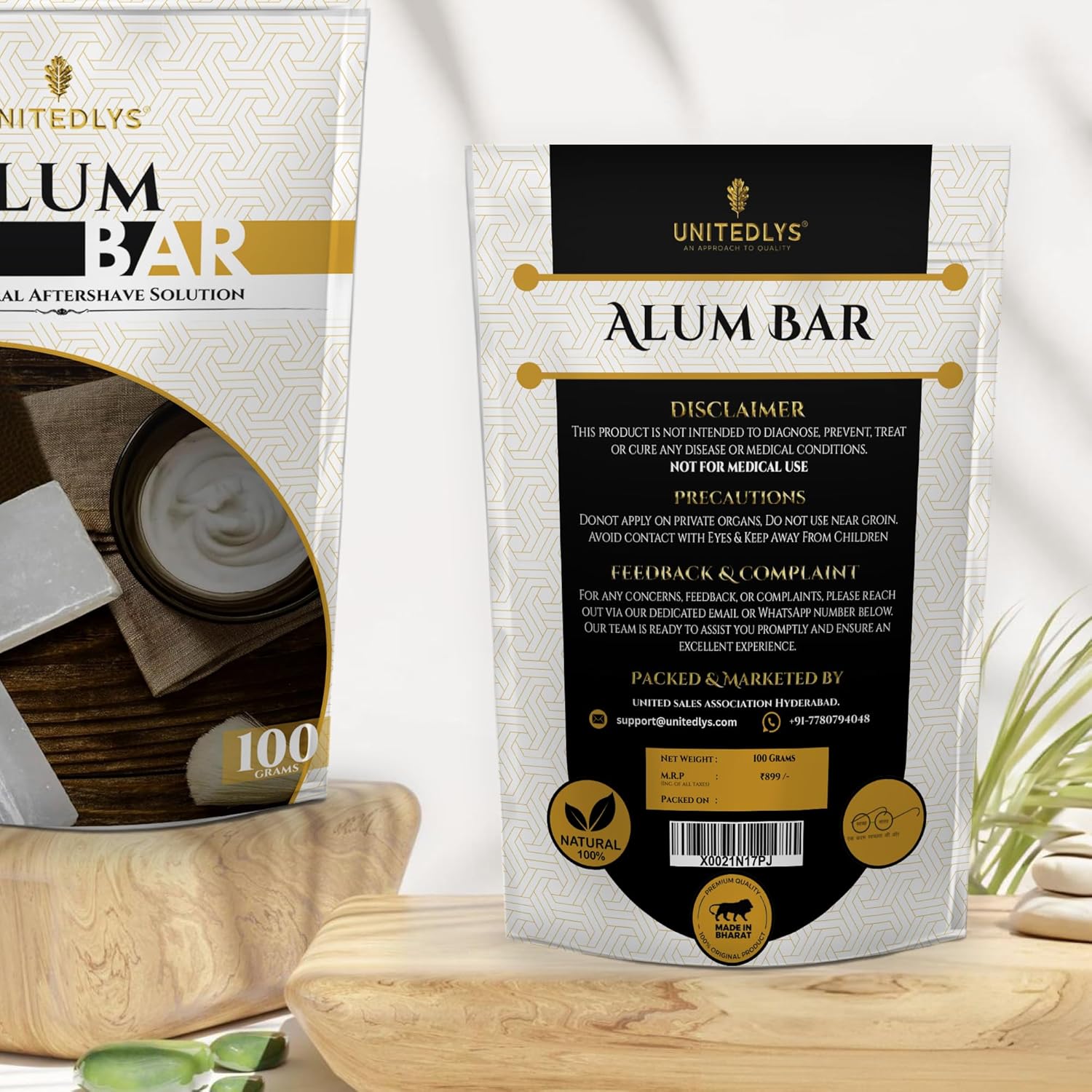 Unitedlys Premium Alum Stone Bar 100 gram with Travel Case | Natural Fitkari Stone for Skin Tightening & Water Purification | Crystal White Alum Bar for Underarms & Shaving|Gentle & Effective Phitkari