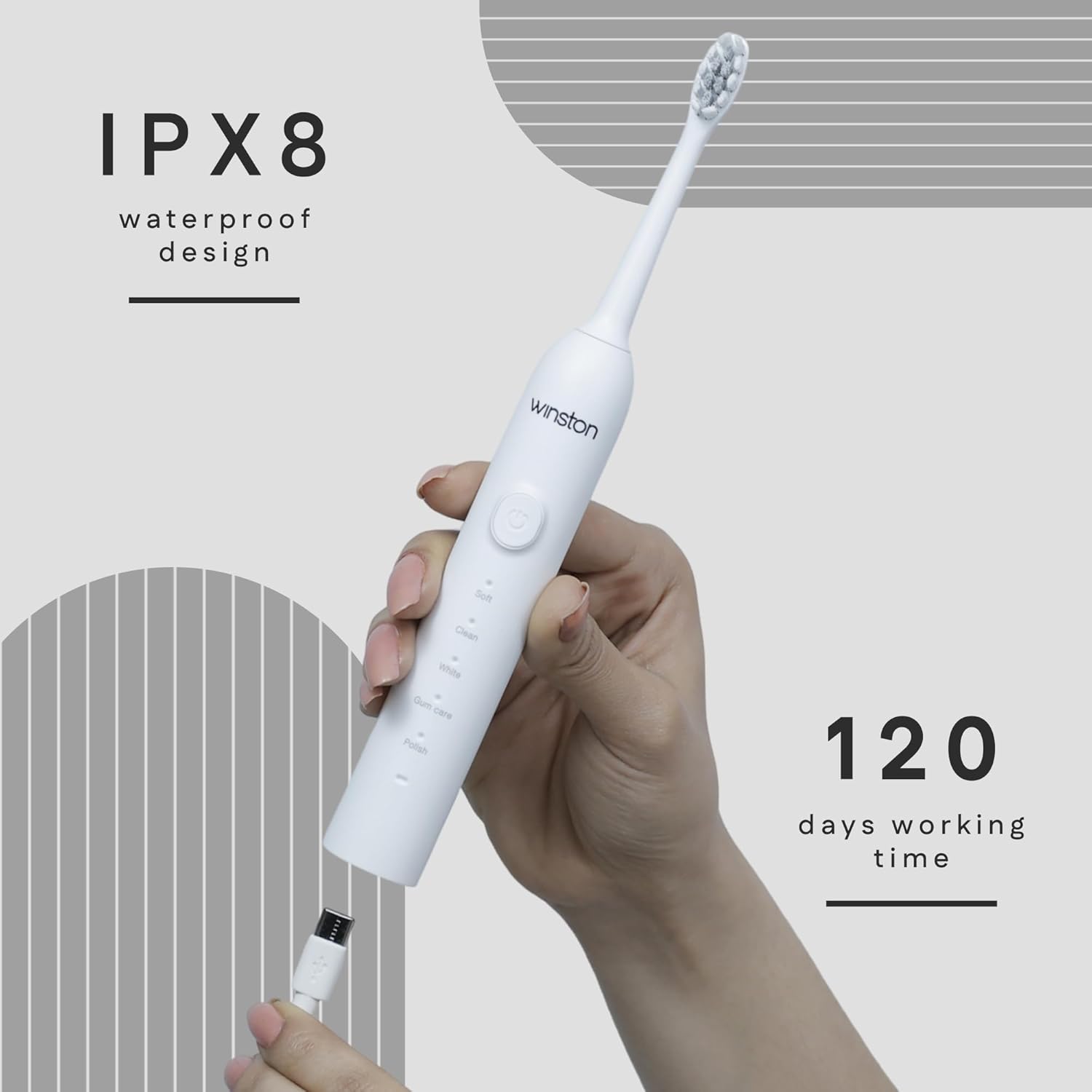Elevate your oral hygiene routine with our Rechargeable toothbrush features, designed to naturally help remove surface stains and promote a whiter smile over time.