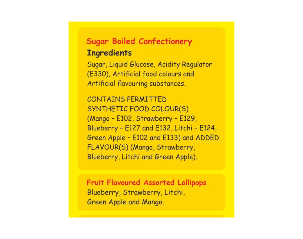 The lollipops are safe for kids as they have no masala center filling, and do not try to be spooky by being too sour or too hot. These are just clear sugar candies made with flavoring and coloring.