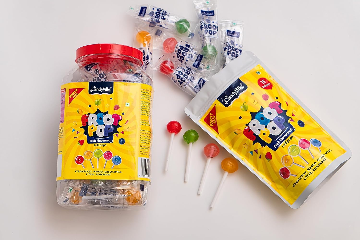 Introducing FrootPop, Fruit Flavoured lollipops in delicious flavours of Strawberry, Blueberry, Litchi, Green Apple and Mango.