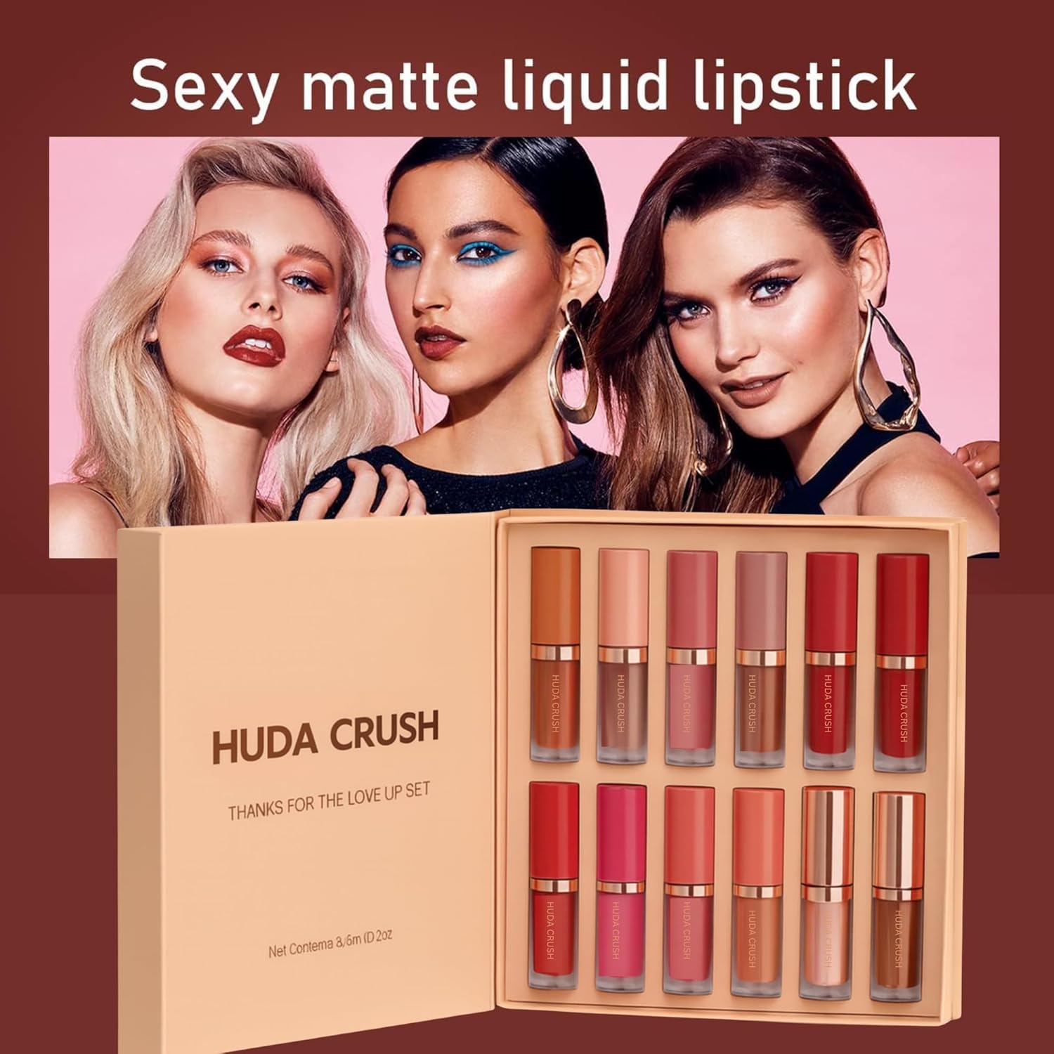“Discover the enchanting allure of the HUDA CRUSH Makeup Gift Set For Women designed with the modern woman in mind. Our empathetic approach to beauty ensures that every woman and girl feels understood and valued in her journey to self-expression. Within this exquisite matte lipstick combo set, you’ll find an array of shades that cater to every mood and occasion, from the subtle elegance of nude brown to the bold statement of maroon. This lipstick set is a celebration of diversity, acknowledging the unique beauty of every skin tone. Whether you’re searching for a lipstick for dusky skin tone or a vibrant red lipstick combo set, HUDA CRUSH has you covered. Our matte lipsticks for women are crafted with a long-lasting formula, ensuring your look remains flawless throughout the day. The lipstick matte waterproof feature guarantees that your confidence won’t be shaken by unexpected weather changes or the demands of a long day. Included in this stunning makeup gift set for women is a variety of options, from the sophisticated nude shade lipstick to the bold maroon lipsticks for women. Each lipstick liquid is designed for comfort and durability, promising a smooth application and a transfer-proof finish. The liquid lipstick waterproof feature is perfect for those who need their makeup to withstand the rigors of life, while the lipstick glossy long lasting option offers a touch of glamour for special occasions. Our lipstick combo set is more than just a collection of colors; it’s a thoughtful cute lip gloss who appreciate quality and style. The cute lip gloss included adds a playful touch, making it an ideal addition to any Liquid Lipstick Combo Set Whether you’re treating yourself or searching for the perfect women gift set, the HUDA CRUSH Lipstick Combo Set offers unparalleled value and beauty. Embrace the power of self-expression with our nude lipstick combo, and let HUDA CRUSH be your trusted companion in your beauty journey. Our products are crafted with care, ensuring that every swipe of lipstick is a step towards confidence and individuality.”