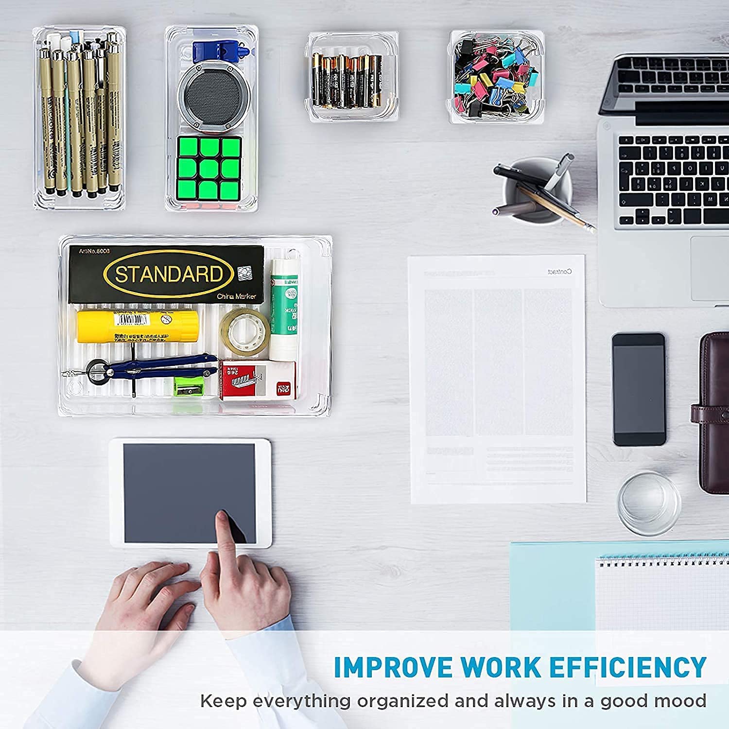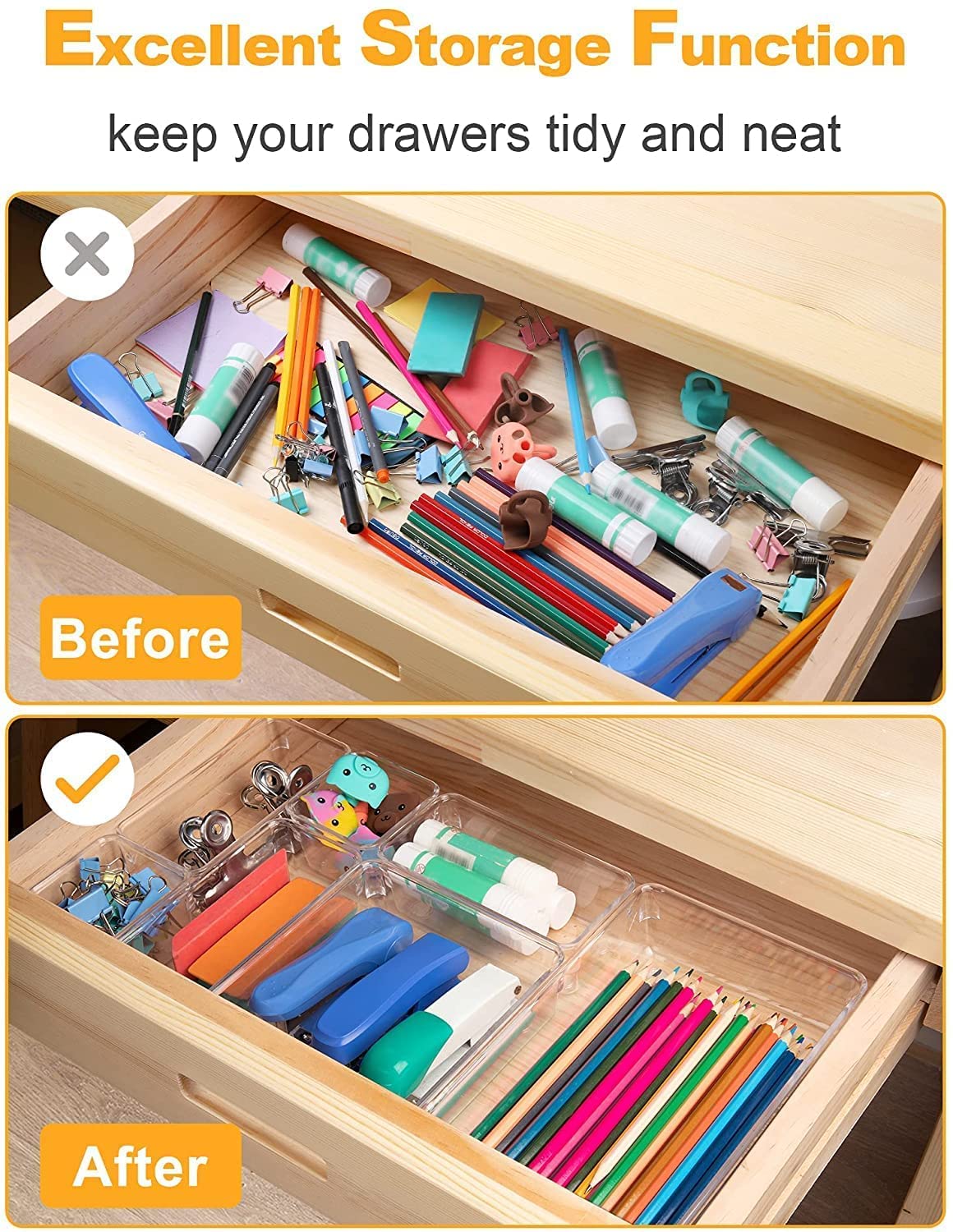 JIALTO Drawer Organizer Divider Tray | Stationary Drawer Storage Organizer | Makeup organizer Drawer Organizer | Acrylic Organizer 16 Pcs