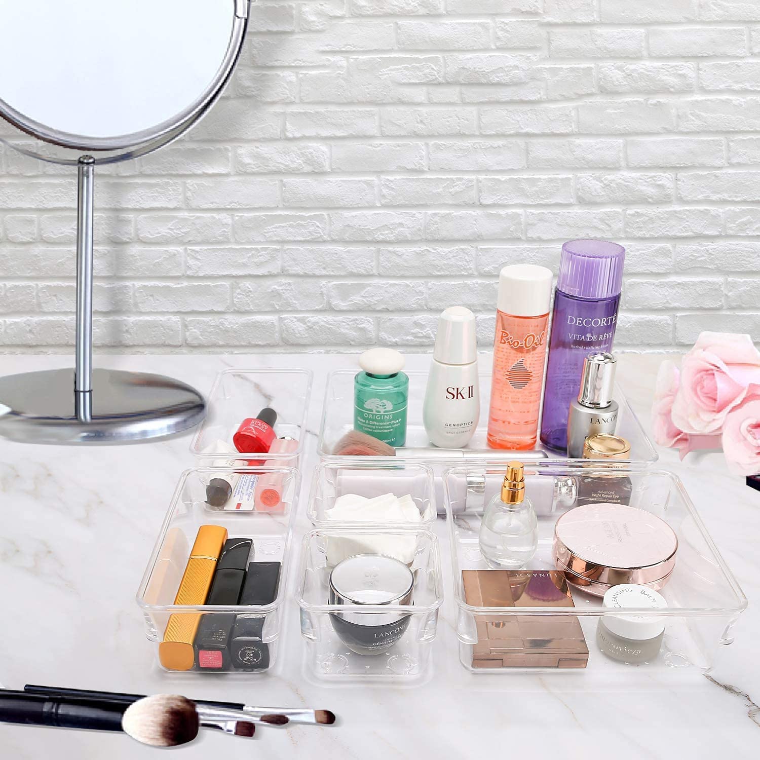 drawer storage organizer : The drawer organiser, made of clear acrylic, provides a sleek and elegant look. It makes an excellent make up organiser, allowing you to view and access your cosmetics easily. The transparent storage organizer also makes it ideal for storing small items.