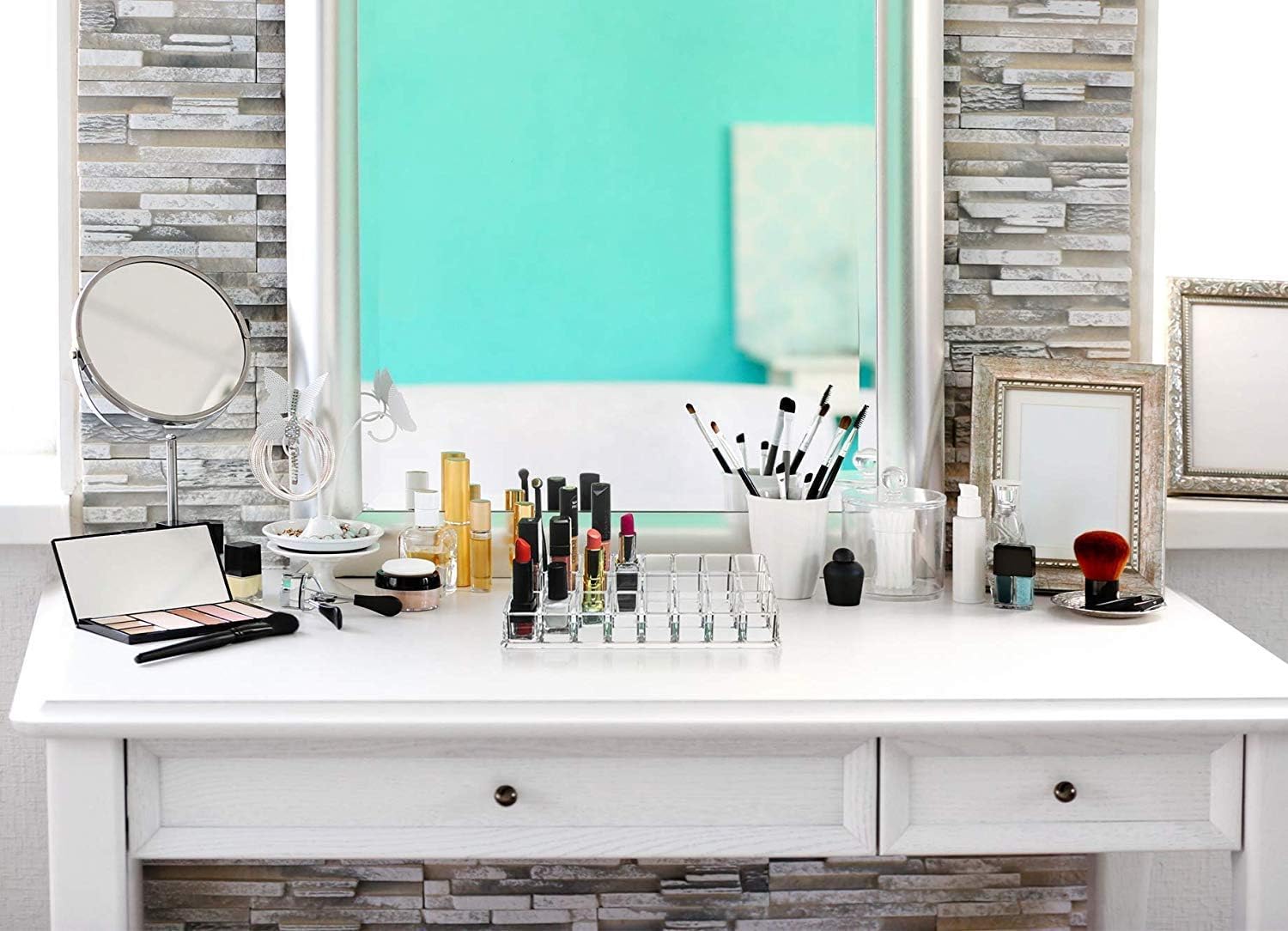 Efficient Organization: Neatly arrange makeup, lipstick, brushes, and cosmetics in 24 compartments for a clutter-free display and easy access.