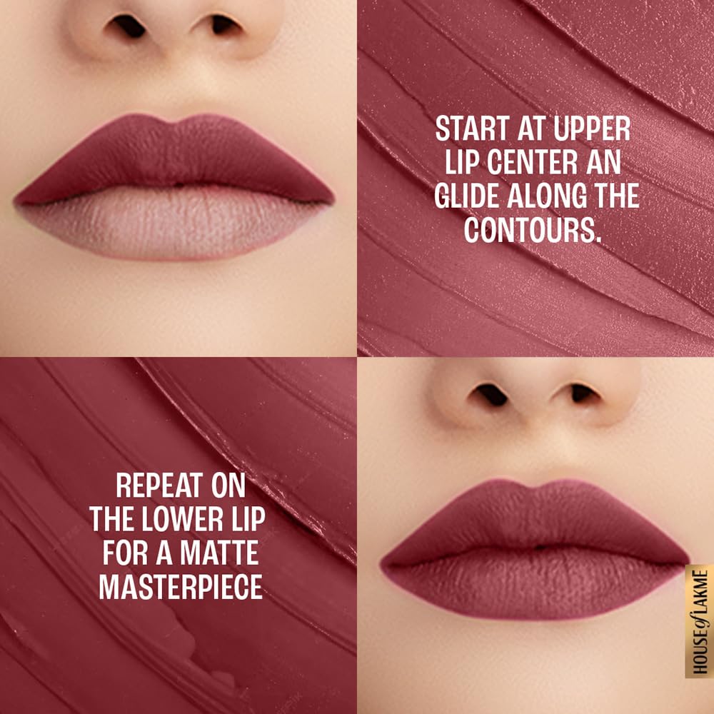 QUICK APPLICATION: Lakme 9 to 5 Primer Matte Lipstick glides smoothly onto the lips for easy and quick application. The lipsticks look regal in just one application but add on a second layer for an even more long-lasting no-touchup look.