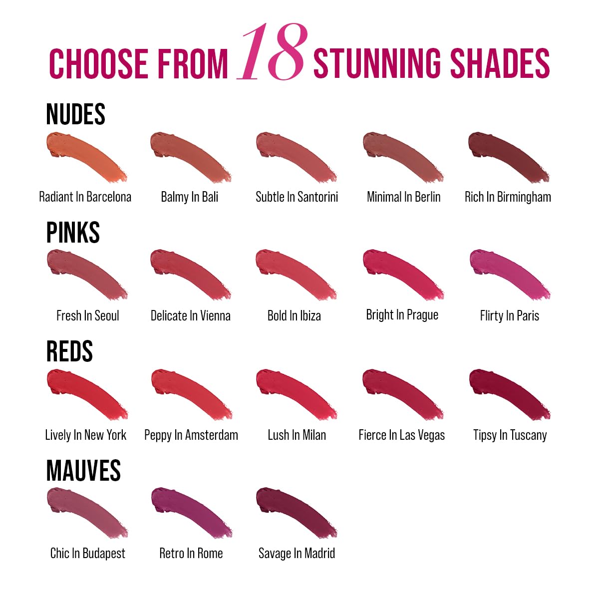 It is a long-wear, Vitamin E enriched with intense matte finish, added hydration and non-drying texture. This matte lipstick is enriched with olive oil to keep the lips nourished for long. These lipsticks can help you achieve a perfect lip makeup look in just one swipe. So, it’s time to switch to cruelty-free lipstick that makes your lips look fuller and healthier and helps keep your makeup game on point! These matte lipsticks are available in 18 options ranging from brown, red, burgundy, nudes, wine, mauves, and pinks.