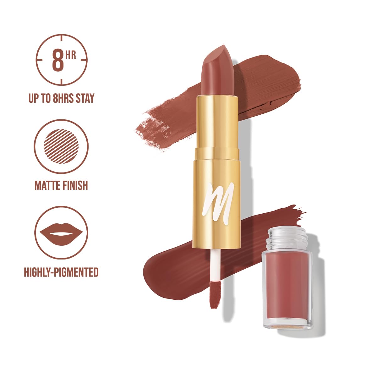 Non-drying formula in a matte finish & Long-lasting lip colour with up to 8Hrs stay