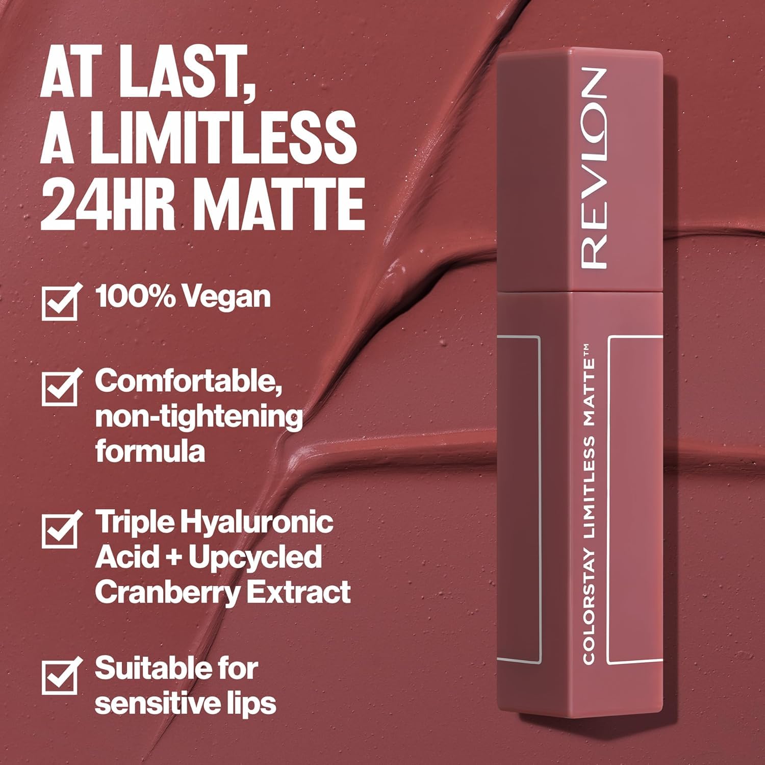 PROTECTS LIPS: Formulated with Triple Hyaluronic Acid + Upcycled Cranberry Extract; suitable for sensitive lips