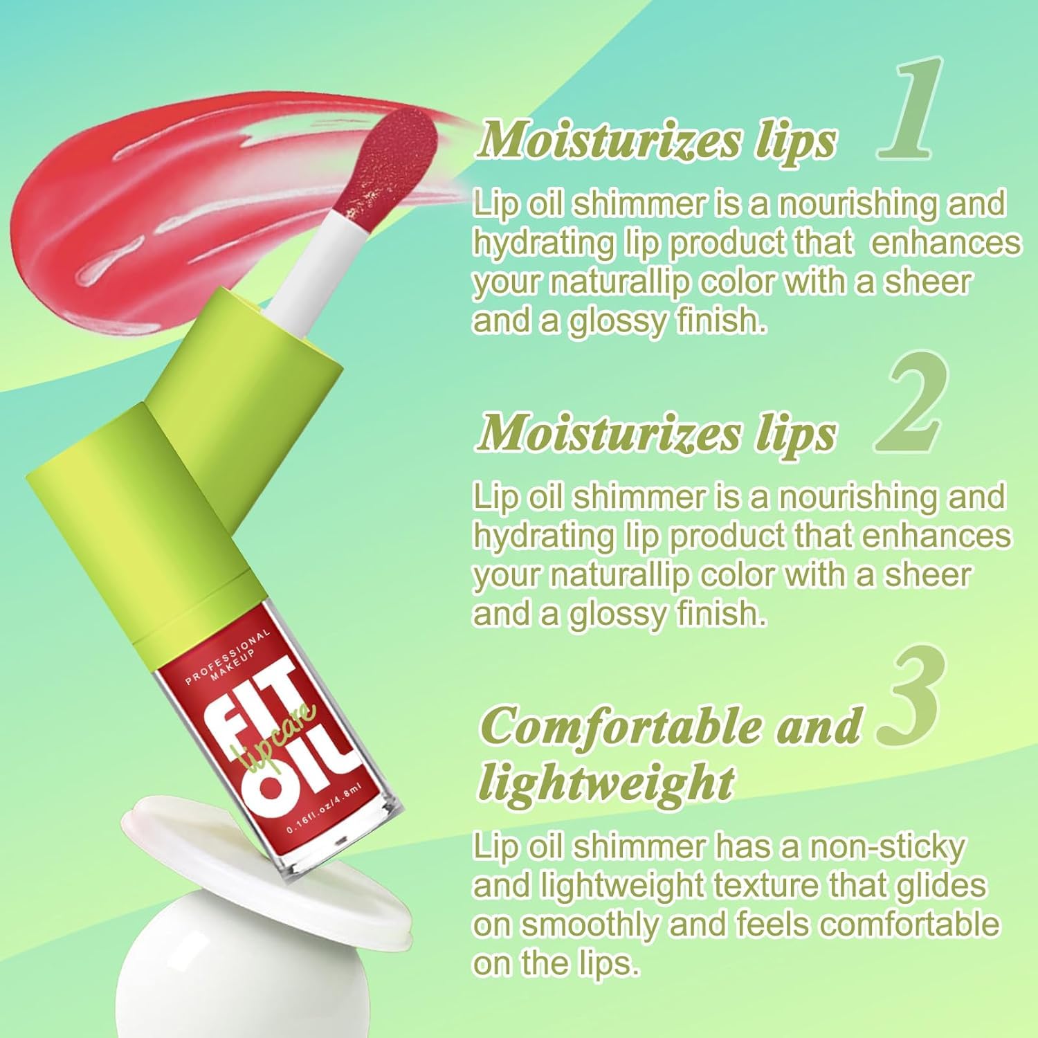 Introducing our lip oil, designed to give your lips a clear, full-bodied shine and intense moisturizing effect. Experience the epitome of glossy perfection with our lip gloss, as the high gloss effect leaves your lips looking plump, smooth, and simply irresistible. Not only does our lip oil deliver an enviable shine, but it also provides daily lip care. The light and elegant transparent shades of our clear lip gloss can be applied to nourish and moisturize dry lips. Experience the magic as our natural lip stain makeup brightens your lip color and lightens those pesky lip lines, giving you a truly fresh and rejuvenated look. Say goodbye to constant touch-ups! Our lip plumper gloss boasts a long-lasting and non-sticky formula that keeps your lips hydrated and shiny throughout the day. No need to worry about dryness or discomfort. With our lip gloss, your lips will stay nourished,smooth,and naturally radiant, exuding a mesmerizing shine that turns heads wherever you go. Discover the versatility of our lip balm. Use it as a base for your lip makeup or simply as a moisturizing lip treatment to prevent dryness. And if you’re feeling adventurous, layer our lip plumper gloss in various colors to create an enchanting and hydrating glass lip makeup that’s uniquely you. Let your creativity shine through! Looking for the perfect gift? Our plumping lip oil, with its lightweight texture and intense hydration, offers a zero-gravity silky feel that your loved ones will adore. It’s ideal for personal use or as a thoughtful gift for your mom, wife, or girlfriends on birthdays, Thanksgiving day, Christmas, Halloween, or any other special occasion. Experience the magic of our Plumping Lip Oil and indulge in the ultimate glossy look. Embrace the fullness, the shine, and the hydration. Enhance your natural beauty and let your lips do the talking. Get ready to shine brighter than ever before!