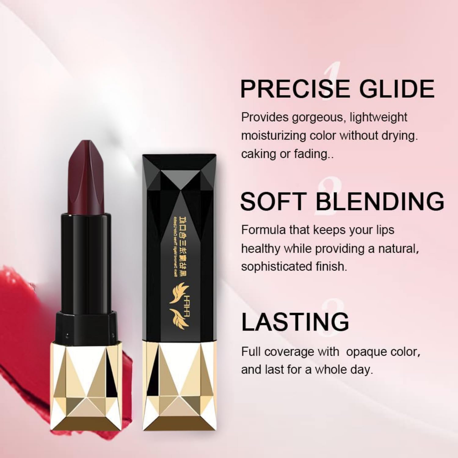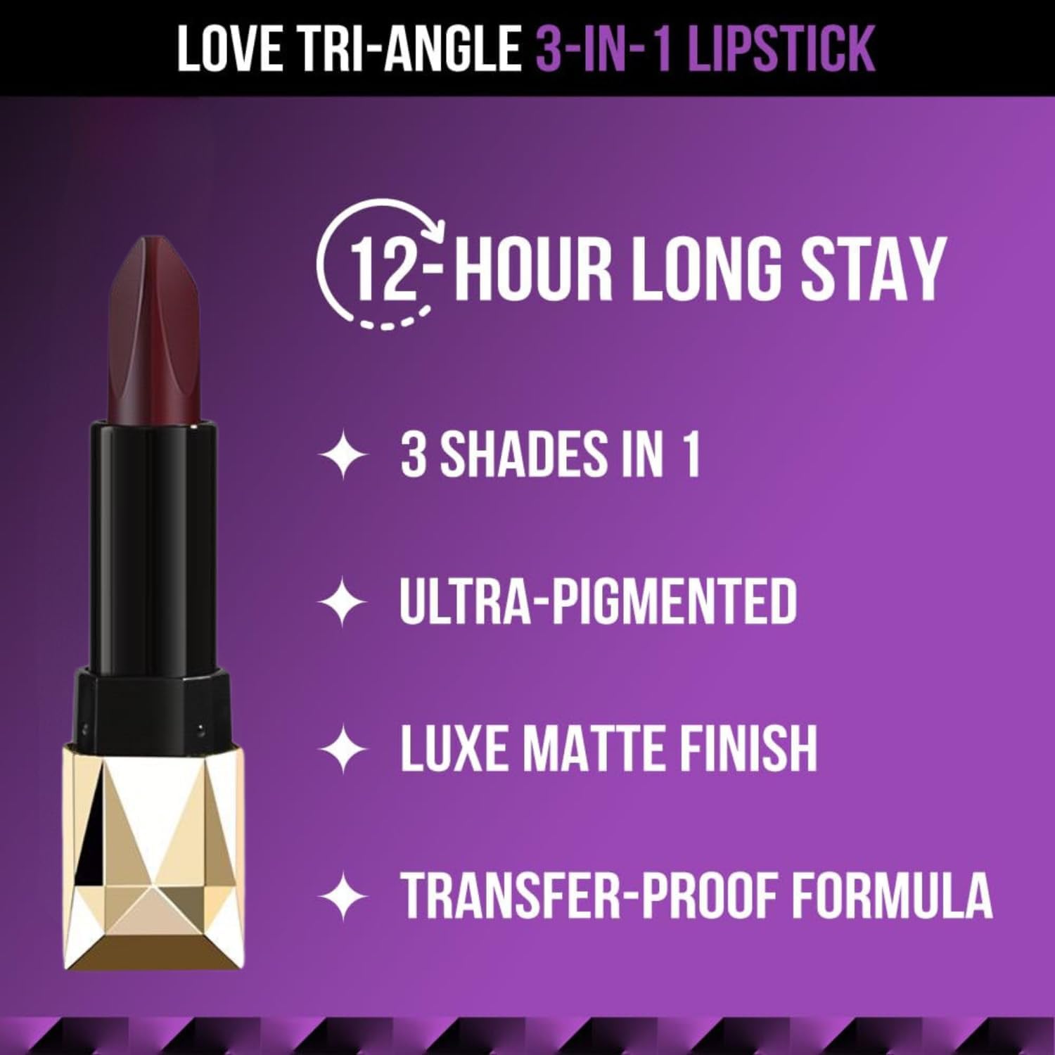 Waterproof Long Lasting Lipstick 3-in-1 Lipsticks seamlessly combines intense pigmentation with a luxurious matte finish for comfortable wear.