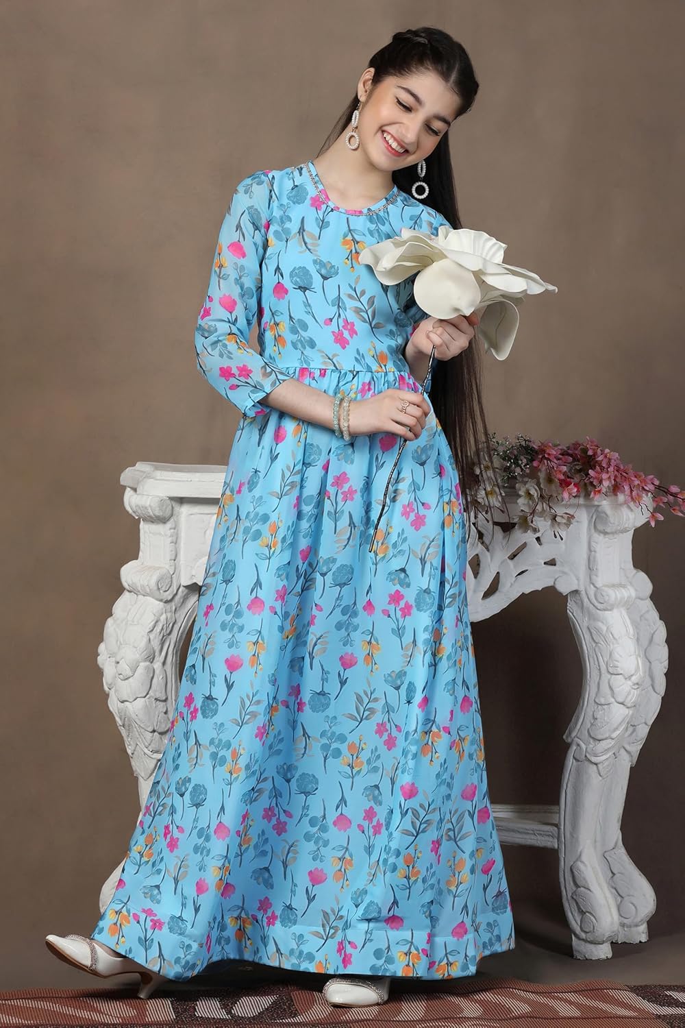 Dress up your little girls in this black floral printed dress from Fashion Dream available on Amazon. This Dress is crafted from lightweight georgette fabric with butter crepe lining. It has round neck, Long Ruched sleeves with flared hem, fit and flare style partially elasticated waist give flair to this dress which will make your girl more stylish. Party perfection dress made for comfort and partying add charm your girl’s fashion. The flared silhouette enhancing its beauty will definitely add charm to your girls look. This girls dress is ideal for all everyday work, parties and outdoor activities. Pair this outfit with strappy sandals, statement earrings and a bright clutch for a classic look that will turn heads.