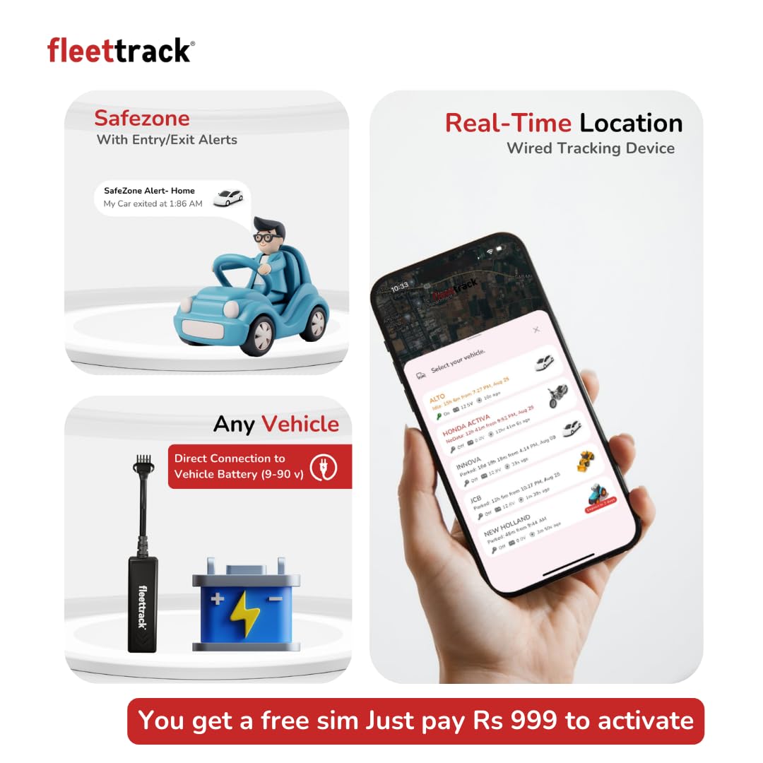 π¦ PACKAGE INCLUDES – GPS TRACKING UNIT WITH SIM: GPS Tracking Unit with Inactive SIM β, Compatible with all vehicle types. SIM activation required for use. Just pay Rs. 999 via Fleettrack app to activate 1 Year sim data.