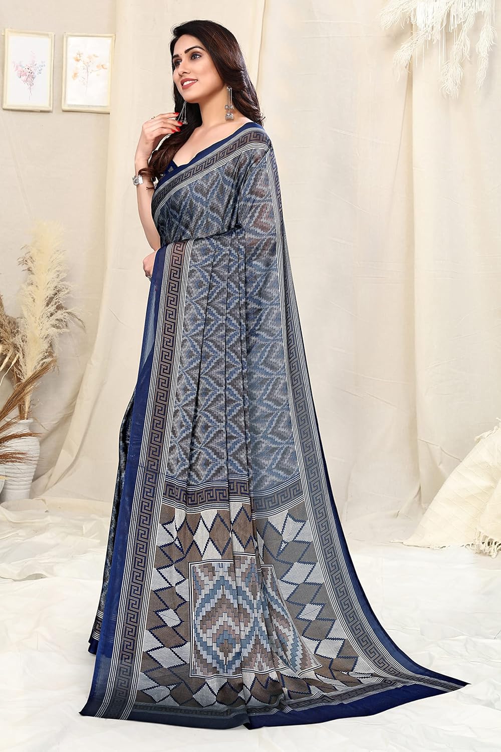 Beautifully designed Indian Traditional ethnic regular wear sarees made of high-quality fabric Chiffon having elegant herringbone printed design with geometric pallu style. Mirchi Fashion brings you a nice addition to the wardrobe of every fashionable female, who wants to look glamorous and distinct.