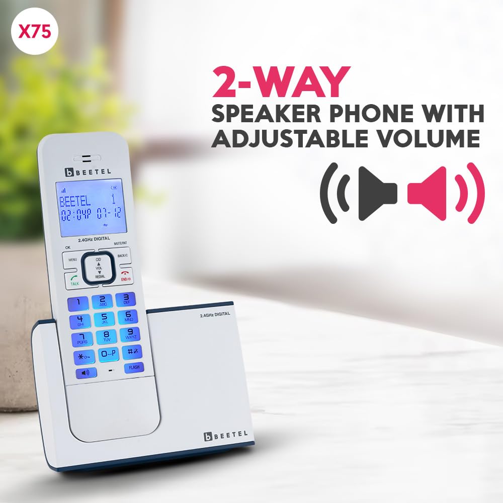 Beetel X75 is a cordless landline phone that combines style and functionality with the latest in digital technology. Equipped with 2.5 GHz digital technology, this phone provides crystal clear sound quality and reliable connectivity. The LCD display with backlit keypad ensures easy navigation, even in low light conditions. The phone comes with a rechargeable battery, providing the convenience of cordless communication without the hassle of changing batteries. Additionally, the dual mode DTMF allows you to switch between pulse and tone dialing modes, making it compatible with any network. With its sleek design and advanced features, the Beetel X75 is the perfect for dependable cordless landline phone.