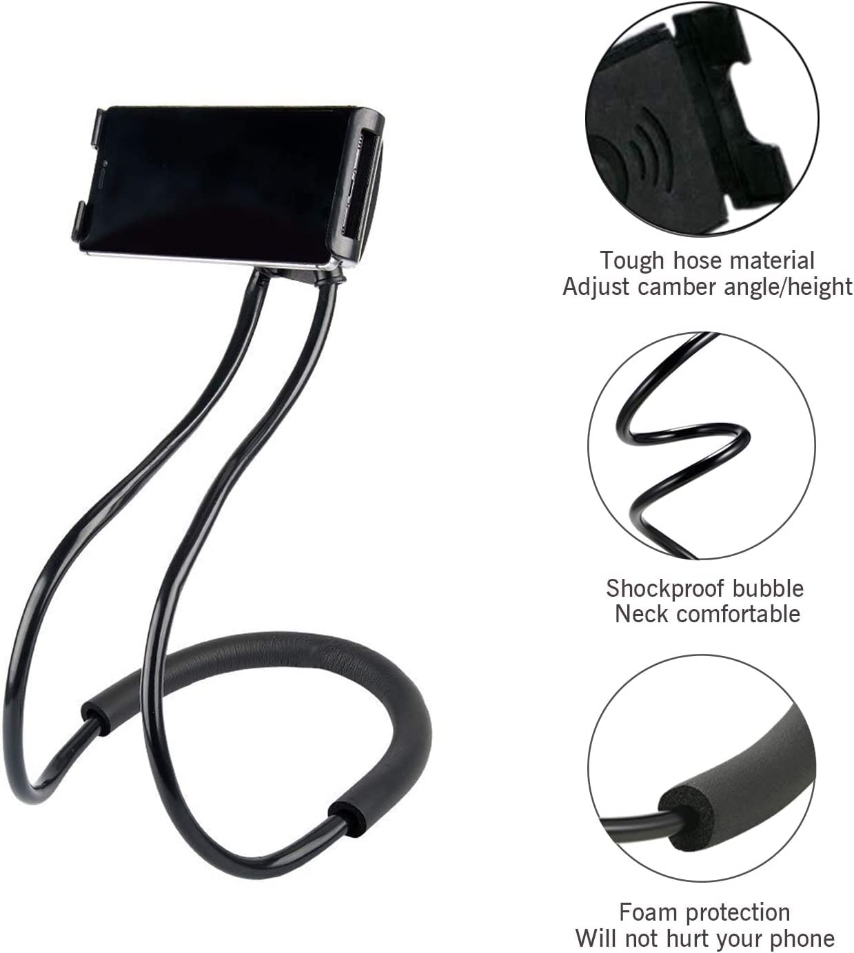 CELLMASTER Lazy Neck Phone Holder, Neck Hanging Mobile Cell Phone Stand, Flexible Rotating Mounts for Smartphones (Black)