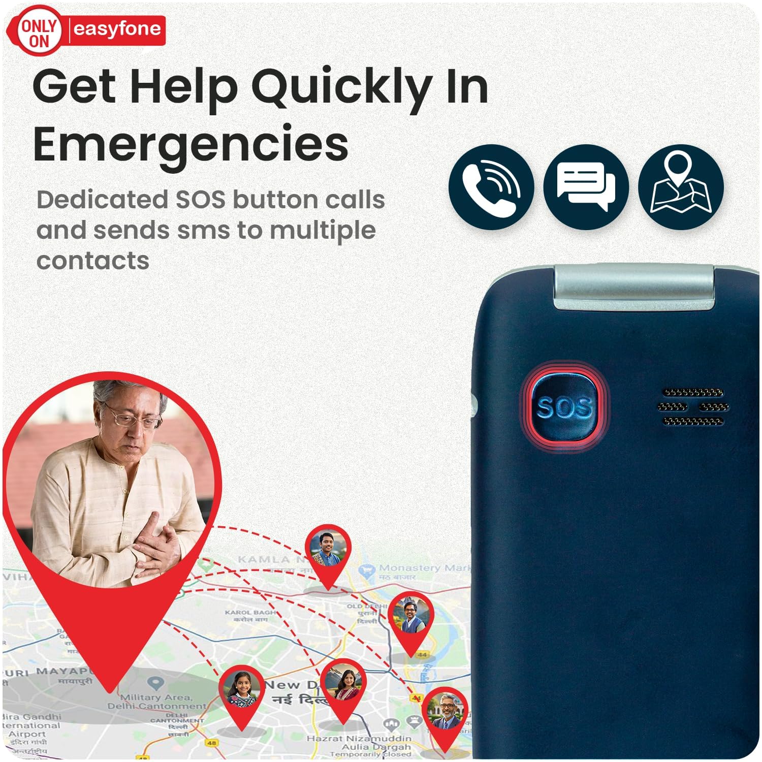 Premium and stylish finish. Works on all telecom networks in India.Easy to dial – big, separated keys with talking and backlit keypad.Unique photo speed dial to call 8 favourite contacts effortlessly.Easy to hear – clear and loud sound and ringtones.Easy to use – simple menu with the facility to hide unused menu items.Easy to get help – dedicated SOS button to get help in emergencies quickly.Easy to charge – docking charger for effortless charging.CareTouch – configure your elders’ easyfone remotely from across the globe with the Caretouch App.Safelist – No more fraud calls. Receive incoming calls only from specified contacts (up to 50 contacts).Set reminders – Stop worrying about your elderly parents forgetting to take medicines, missing doctor appointments, or social engagements.