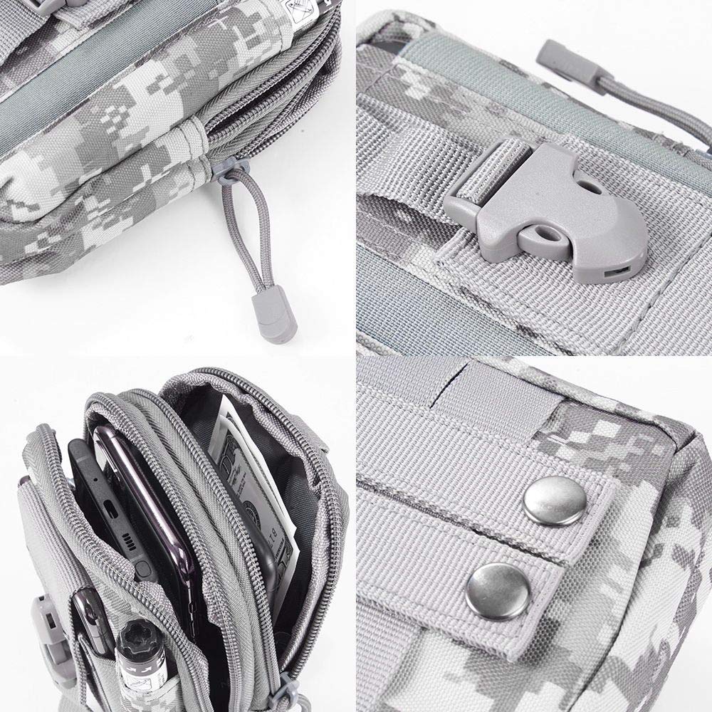 2 item accessory kit combo bundle pack includes: Tactical EDC MOLLE travel organizer sports activity carrying pouch (Gray ACU (Army Combat Uniform) Digital Pixel Camouflage) and Bemz Depot Atom microfiber cloth