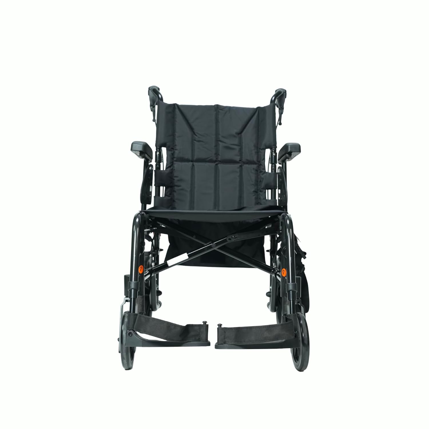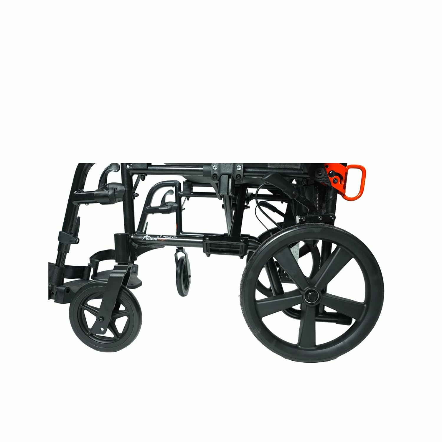 The Action 2 NG Transit (Lite) embodies a premium, attendant-driven, exceptionally lightweight, and foldable wheelchair, with an additional feature of a dual brake system, meticulously crafted from aerospace-grade aluminium, ensuring top-notch quality. This medium active chair excels in functionality, comfort, and stability by incorporating lighter components to optimize manoeuvrability. Crafted with reliability in mind, it includes a wide array of accessories designed to accommodate diverse clinical requirements, making it an excellent choice for daily use.