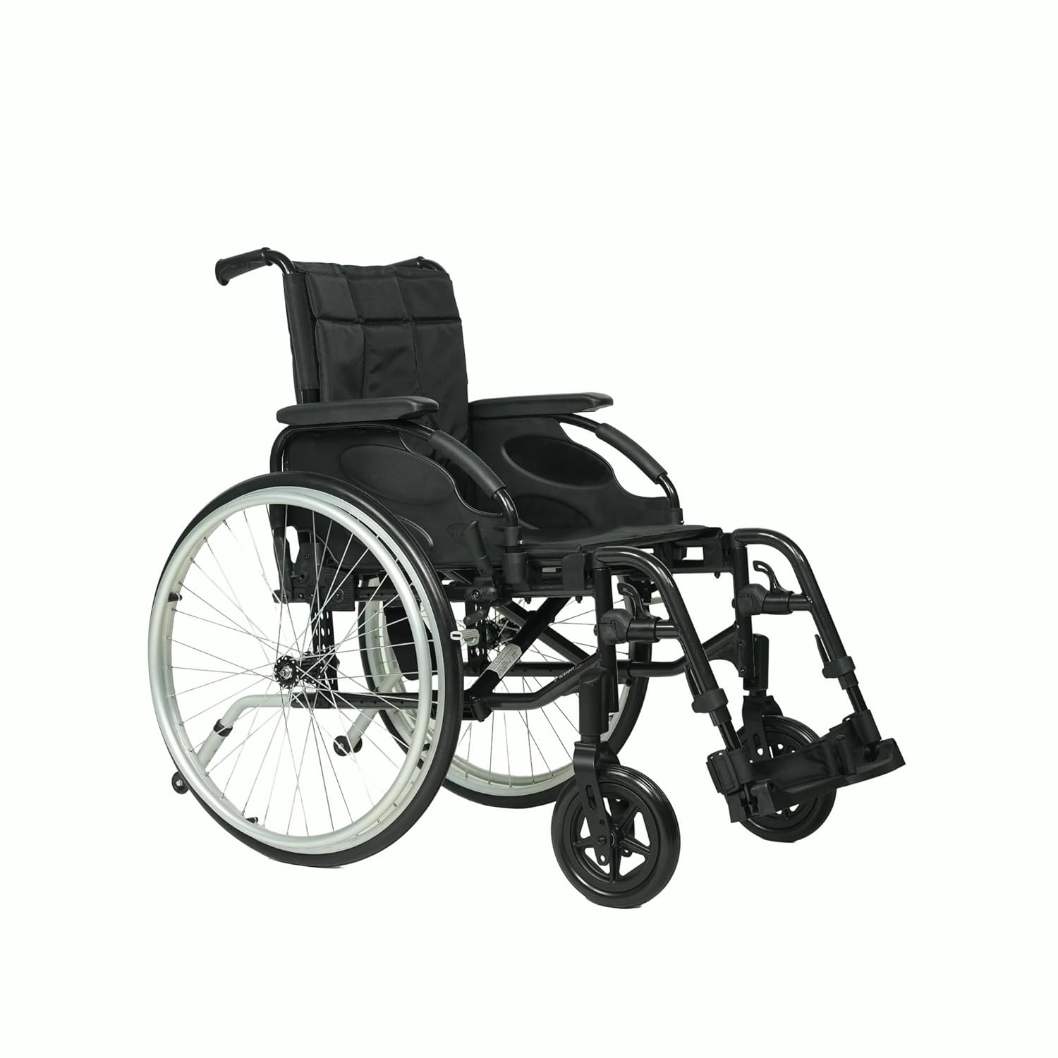 User friendly Customized Seat width option; Sizes available – 15”,16”,17”,18”, 19” & 20”. Basic tool kit. Padded Cushion. Adjustable Head rest. Removable, height adjustable or multi adjustable armrests. Elevating largest including calf pad. Flip up one-piece Footplate. Colour: Anthracite Black