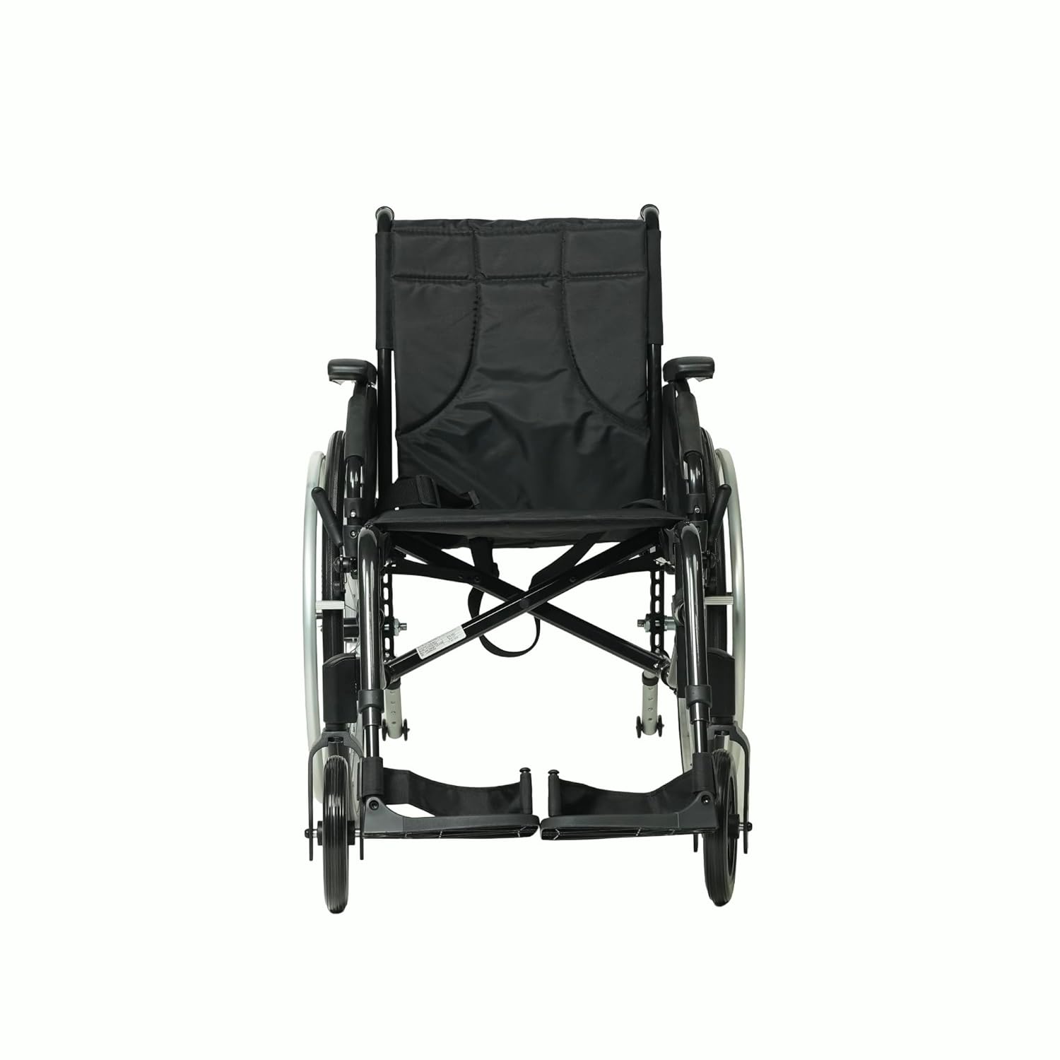 User friendly Customized Seat width option; Sizes available – 15”,16”,17”,18”, 19” & 20”. Basic tool kit. Padded Cushion. Adjustable Head rest. Removable, height adjustable or multi adjustable armrests. Elevating largest including calf pad. Flip up one-piece Footplate. Colour: Anthracite Black