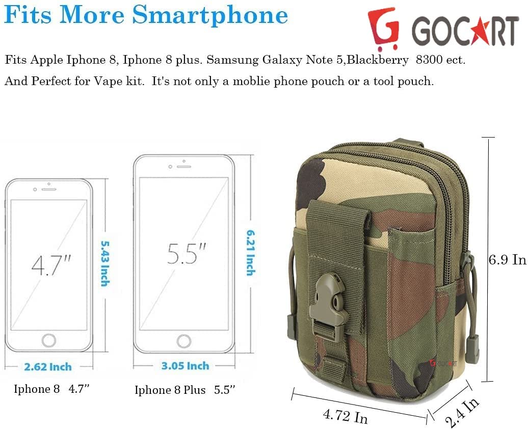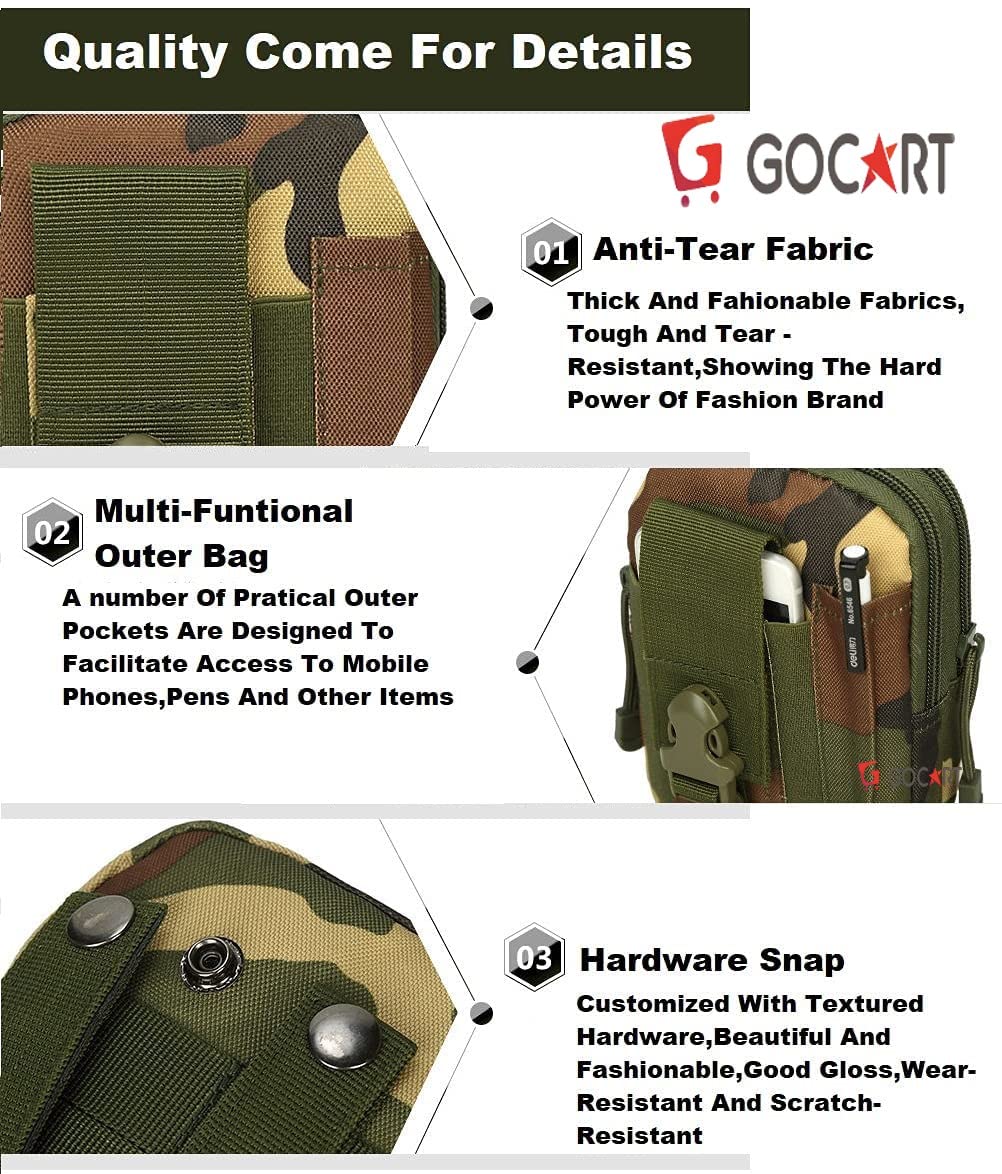 【MOLLE COMPATIBLE】: GOCART EDC pouch has strong webbing belt loops on rear, MOLLE system straps suitable for tactical belt, tactical molle vest or molle backpack. Molle width is adjustable for different belt