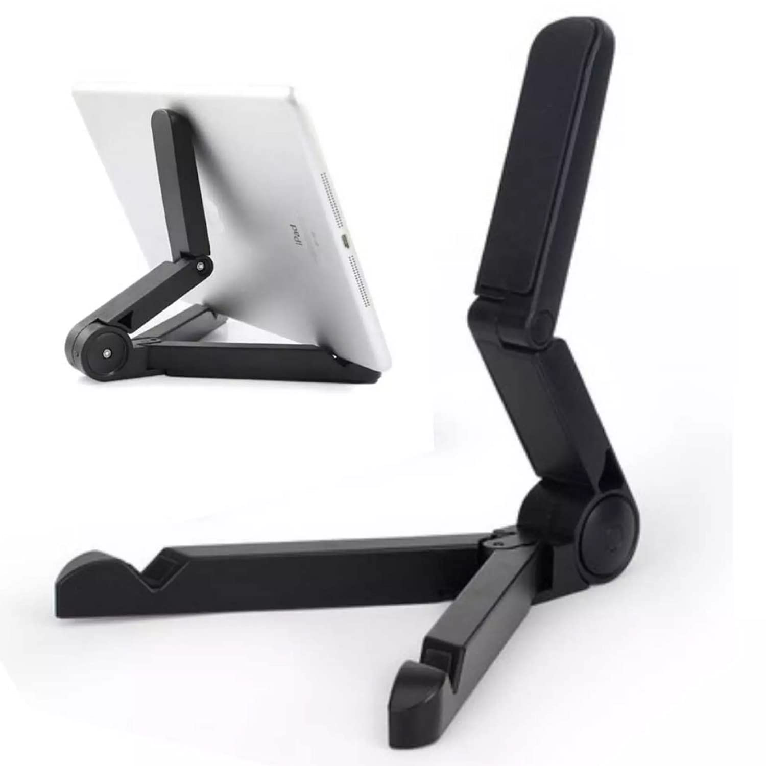 Customers find the portable electronic device stand useful and practical. They find it reasonably priced and easy to use. Many of them consider it a good mobile stand for phones and tablets. The size and adhesive quality are also appreciated. However, opinions differ on its sturdiness and holding capacity.