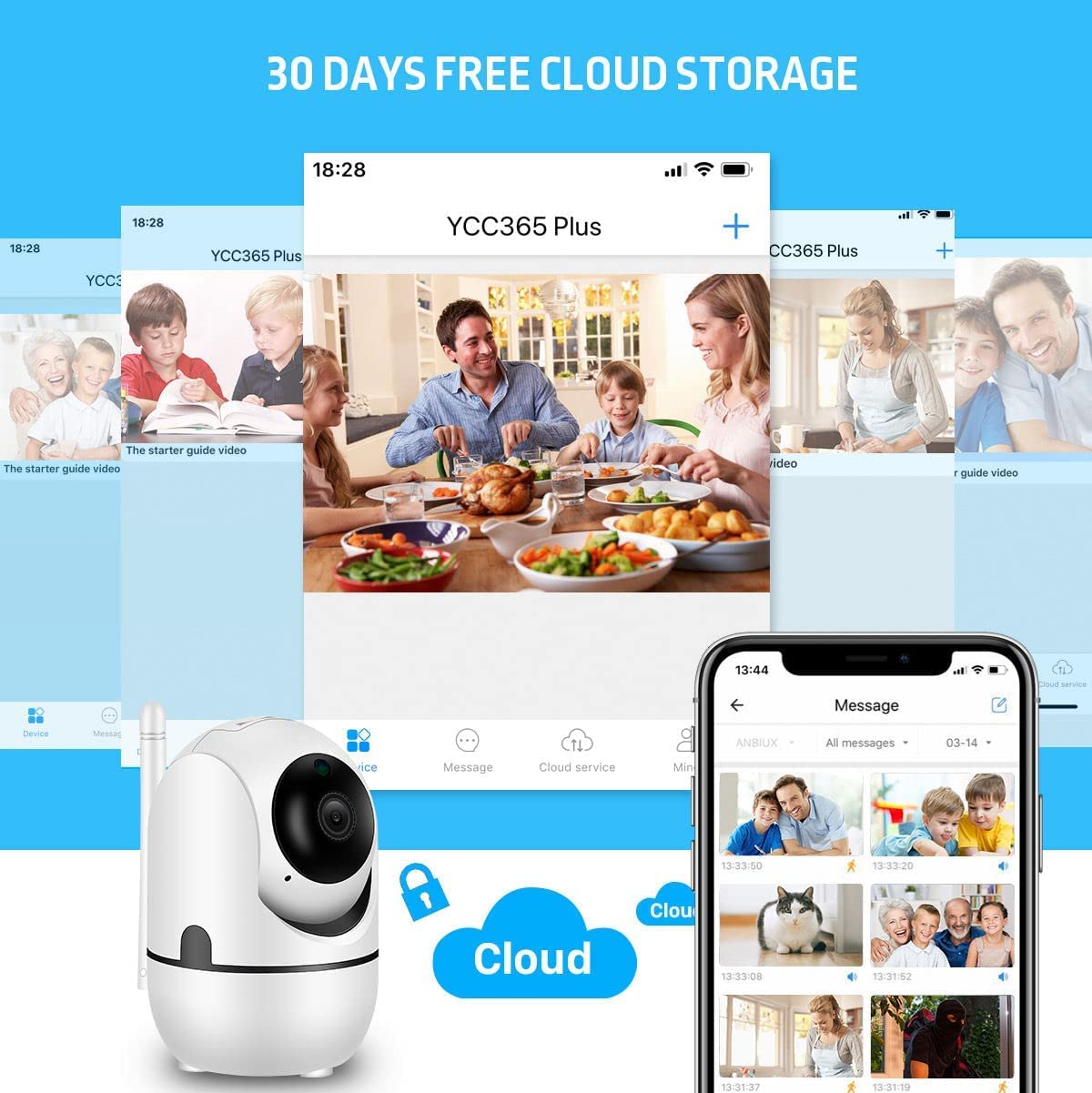 WiFi Security Camera For Baby/Pet/Nanny: Home 1080P Full HD WiFi Camera with 355°horizontal & 110°vertically rotation,85° wide-angle lens offer 360°Panoramic coverage. Advanced 32ft Night Vision with 6 built-in infrared LED beads extend the viewing distance to 3.5 meters in pitch dark without light pollution, a great choice as your baby camera,home camera,pet camera or nanny camera with no LED glare
