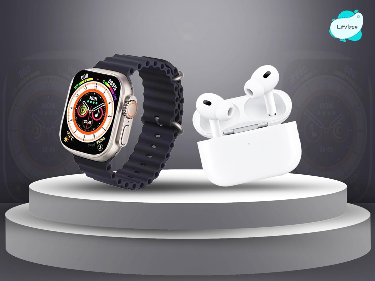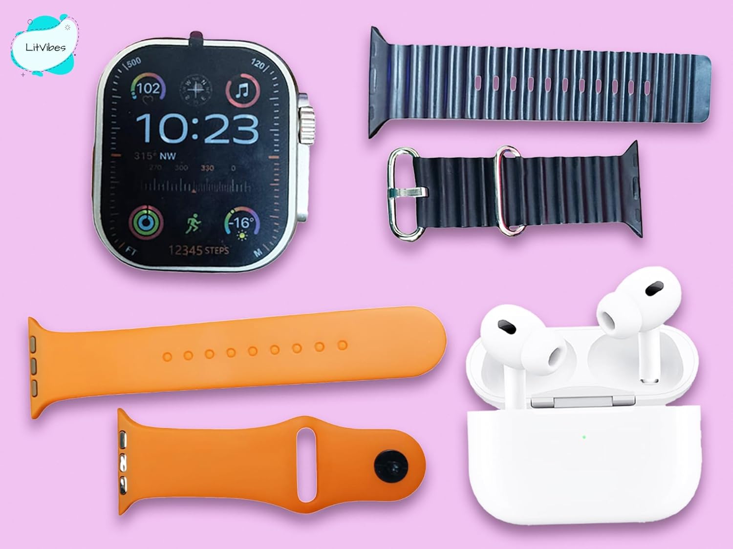 Litvibes Smartwatch is enabled with Bluetooth Calling Function,can receive & make calls directly from your watch.The Watch has a 49 mm display which has smooth drag screen effect,comes with 2 watch straps that makes it more suitable for all the occasions. The Smartwatch comes with a sleek & durable metal body. The build quality of the watch has been made for high durability keeping in mind for the day to day usage.The set contains smart wireless earphones which will help you attend calls & listen to your favourite music without any hassle.Both the smart watch & wireless earphones can be paired with bluetooth & are compatible with all the android & iOS devices & phones.The Set contains 1* Smartwatch,1* Wireless Earphones,2 Detachable Watch Straps,Watch Charging Cable,Earphones Charging Cable,User Manual.
