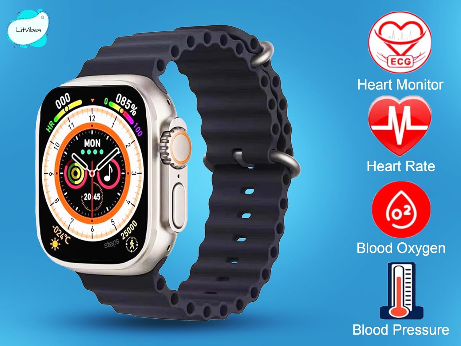 SMARTWATCH : Litvibes Smartwatch is enabled with Bluetooth Calling Function,can receive & make calls directly from your watch. The Watch has a 49 mm display which has smooth drag screen effect,comes with 2 watch straps that makes it more suitable for all the occasions.