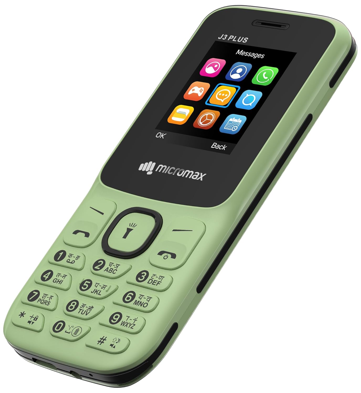 Micromax All-New J3 Plus Sleek & Stylish |Keypad Mobile with 1.77″ Screen|1000 MAH Battery | Bright Torch| Wireless FM | Green Black