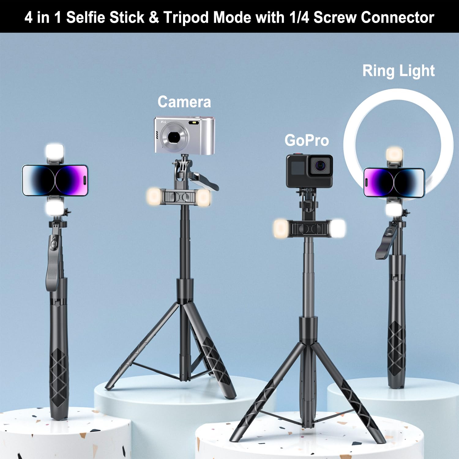 [Lighting for Your Photographic Needs] When your phone’s light can’t meet your brightness needs, our selfie stick comes with 2 detachable fill LED lights with 3 colour temperatures, each with two brightness levels, to meet your lighting needs in most scenarios.Do not worry about power exhaustion problem. Can be charged through the micro usb port.